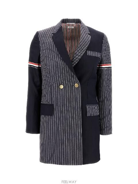 THOM BROWNE 펀믹스 핀스트라이프 암밴드 더블 코트 > 여성의류