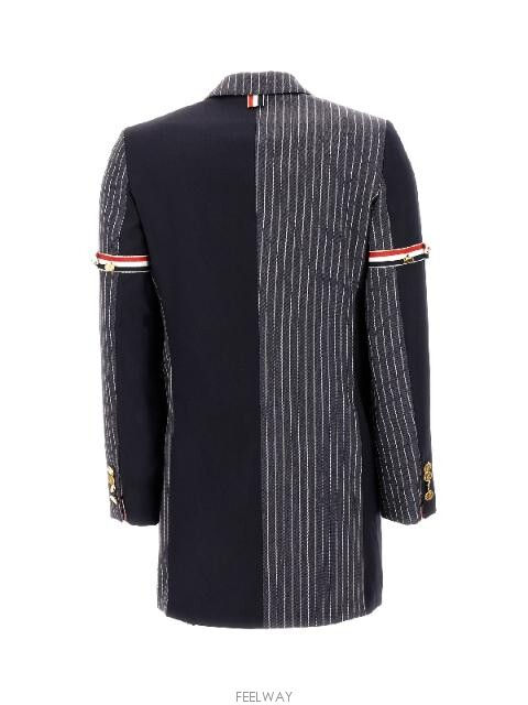 THOM BROWNE 펀믹스 핀스트라이프 암밴드 더블 코트