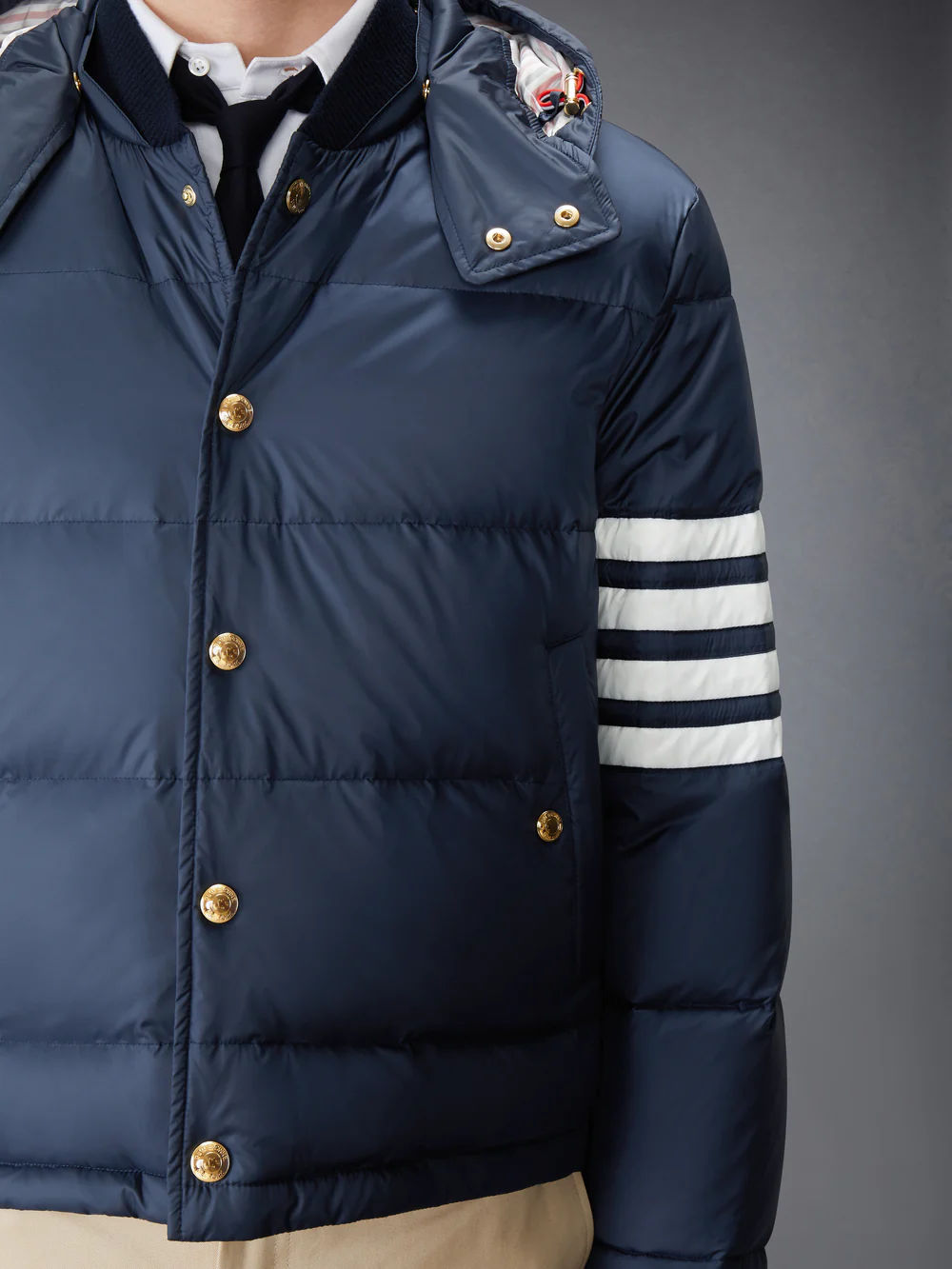 매트 피니시 나일론 다운 필 4-바 후드 코트
