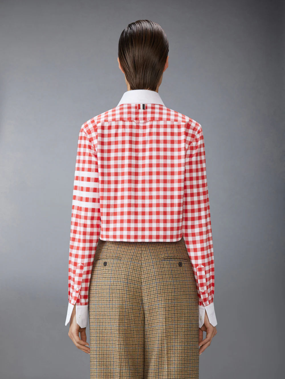 깅엄 체크 플란넬 4-바 크롭 셔츠