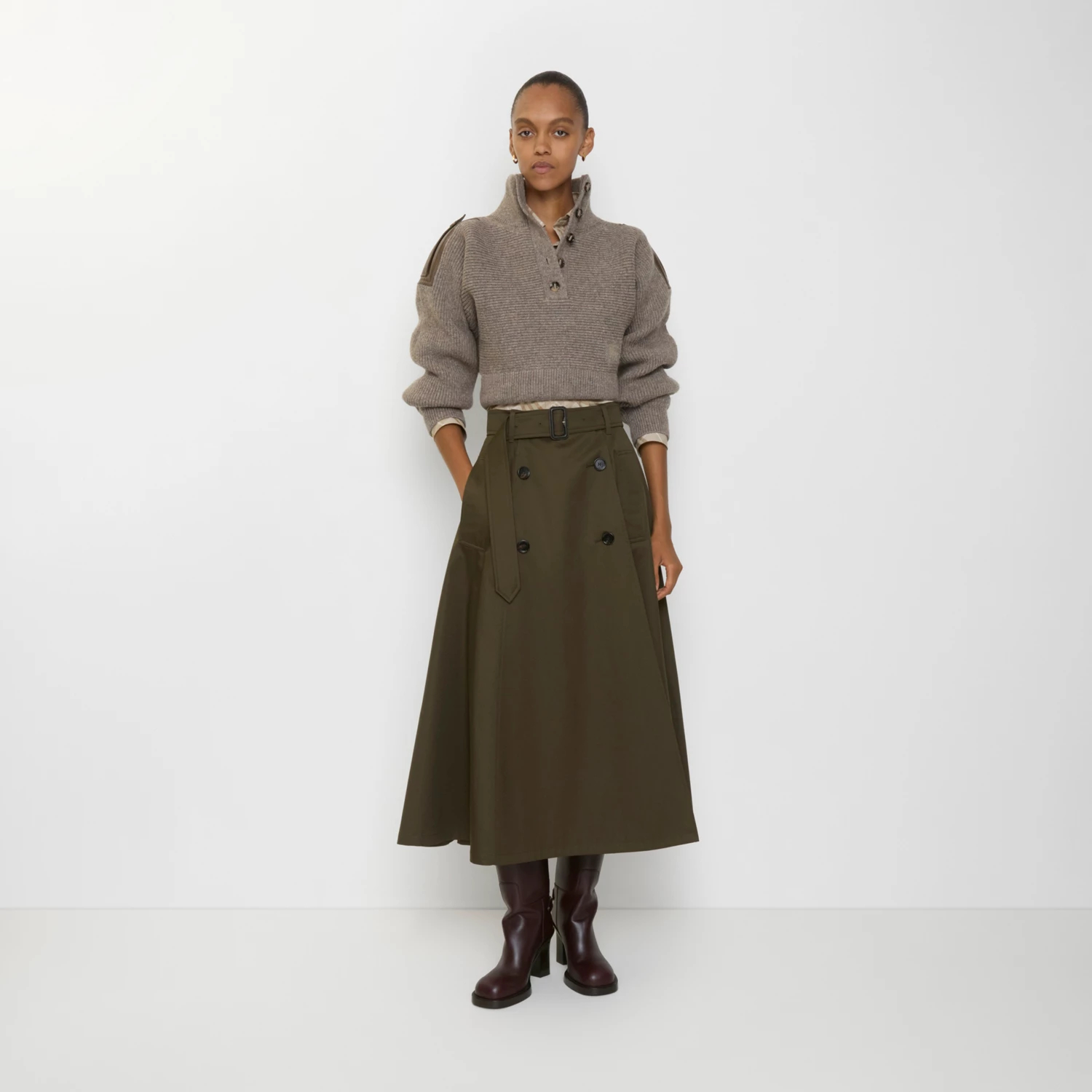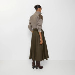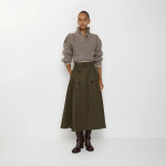 개버딘 트렌치 미디 스커트
