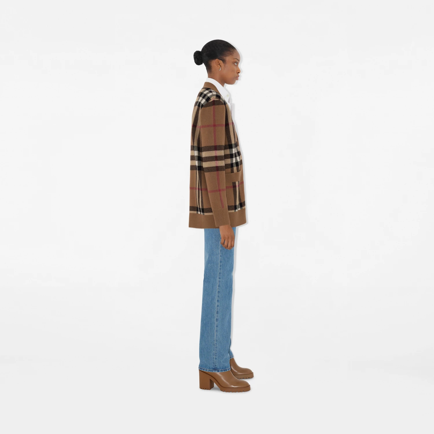 체크 캐시미어 울 카디건