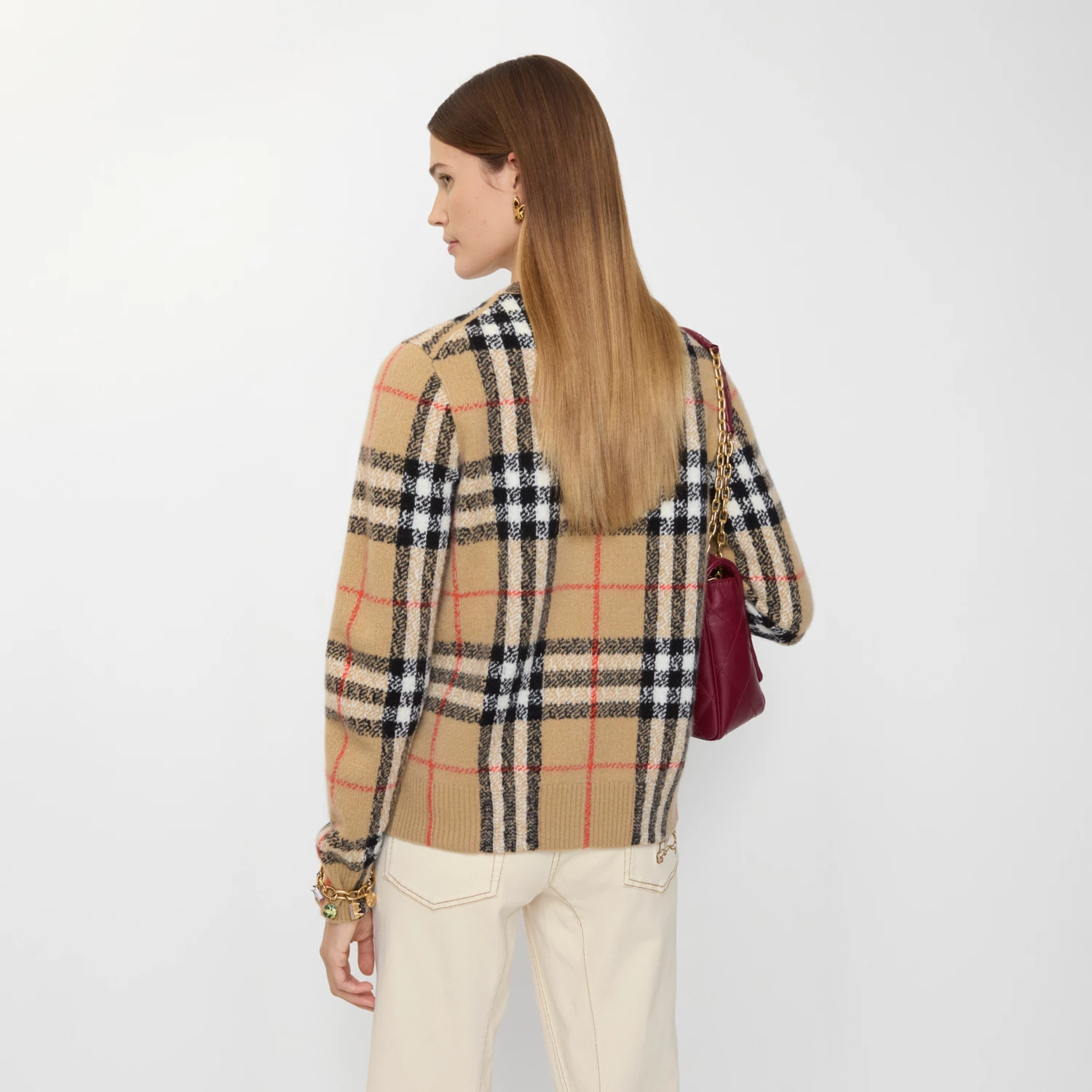 체크 캐시미어 울 카디건 > 여성의류