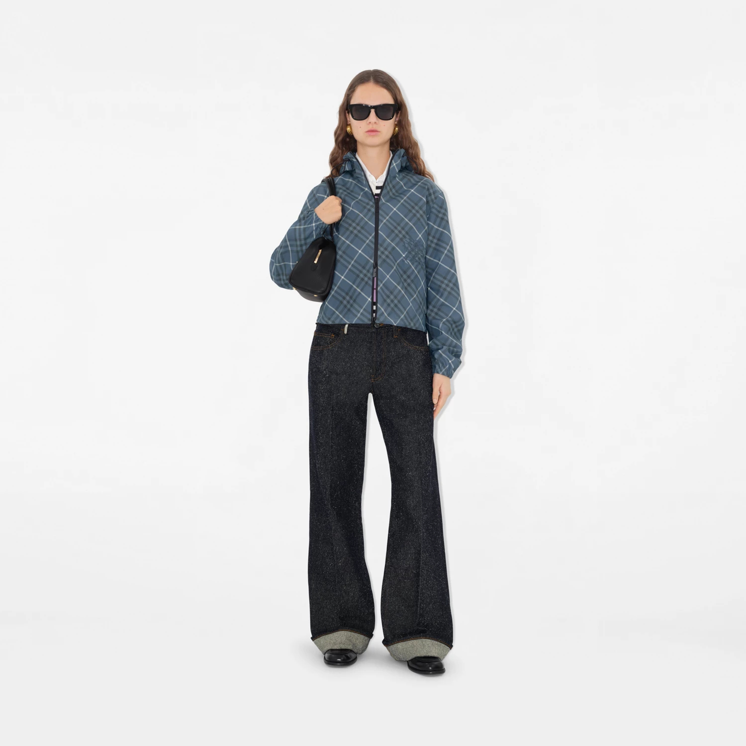 크롭 리버시블 체크 후드 재킷 > 여성의류