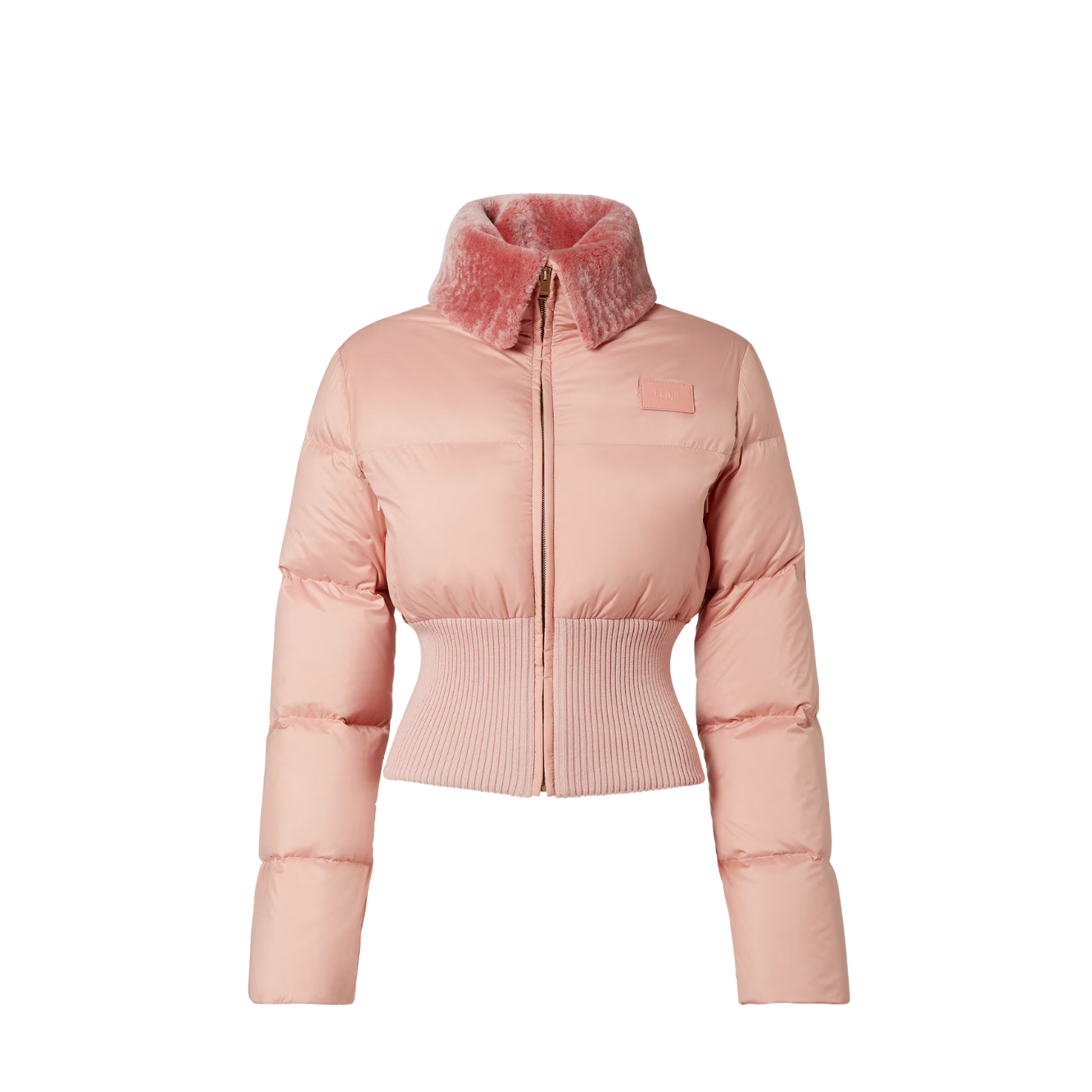 핑크 테크니컬 패브릭 및 시어링 다운 재킷 > 여성의류