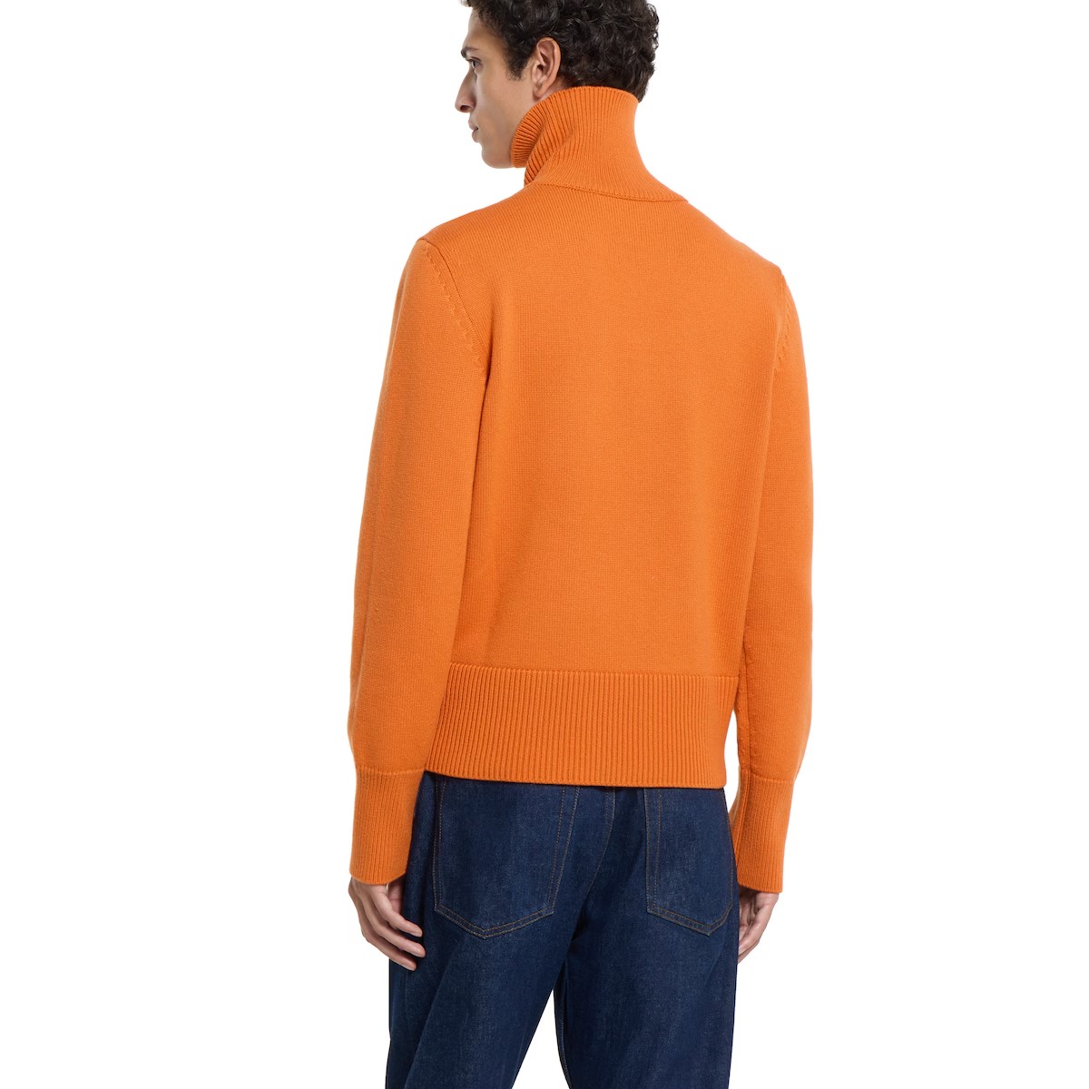 2025 가을-겨울 컬렉션에서 과감한 스타일과 하우스만의 장인 정신으로 되살린 90년대의 풍부한 표현력. 미니멀한 실루엣과 가슴에 토널 인터로킹 G 자수가 돋보이는 터틀넥 스웨터.