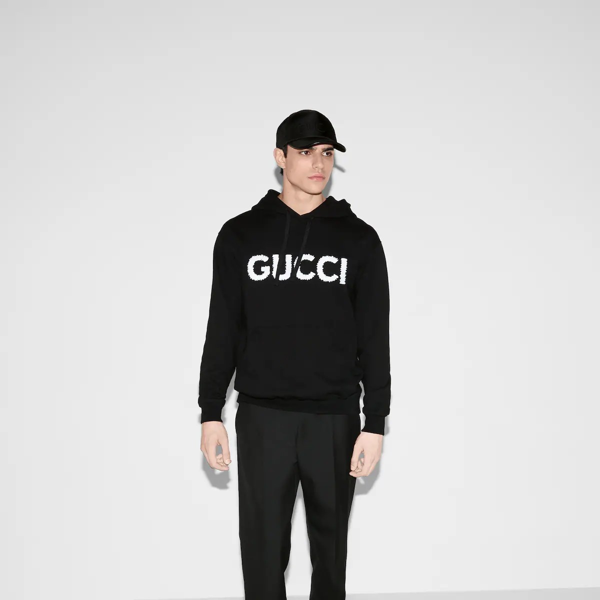 새로운 시즌을 맞아 진화를 거듭하는 구찌의 하우스 코드와 저지 소재의 만남. 미디엄 코튼 저지 소재에 구찌 울 원사 자수로 장식한 레귤러 핏 후드 스웨트셔츠.