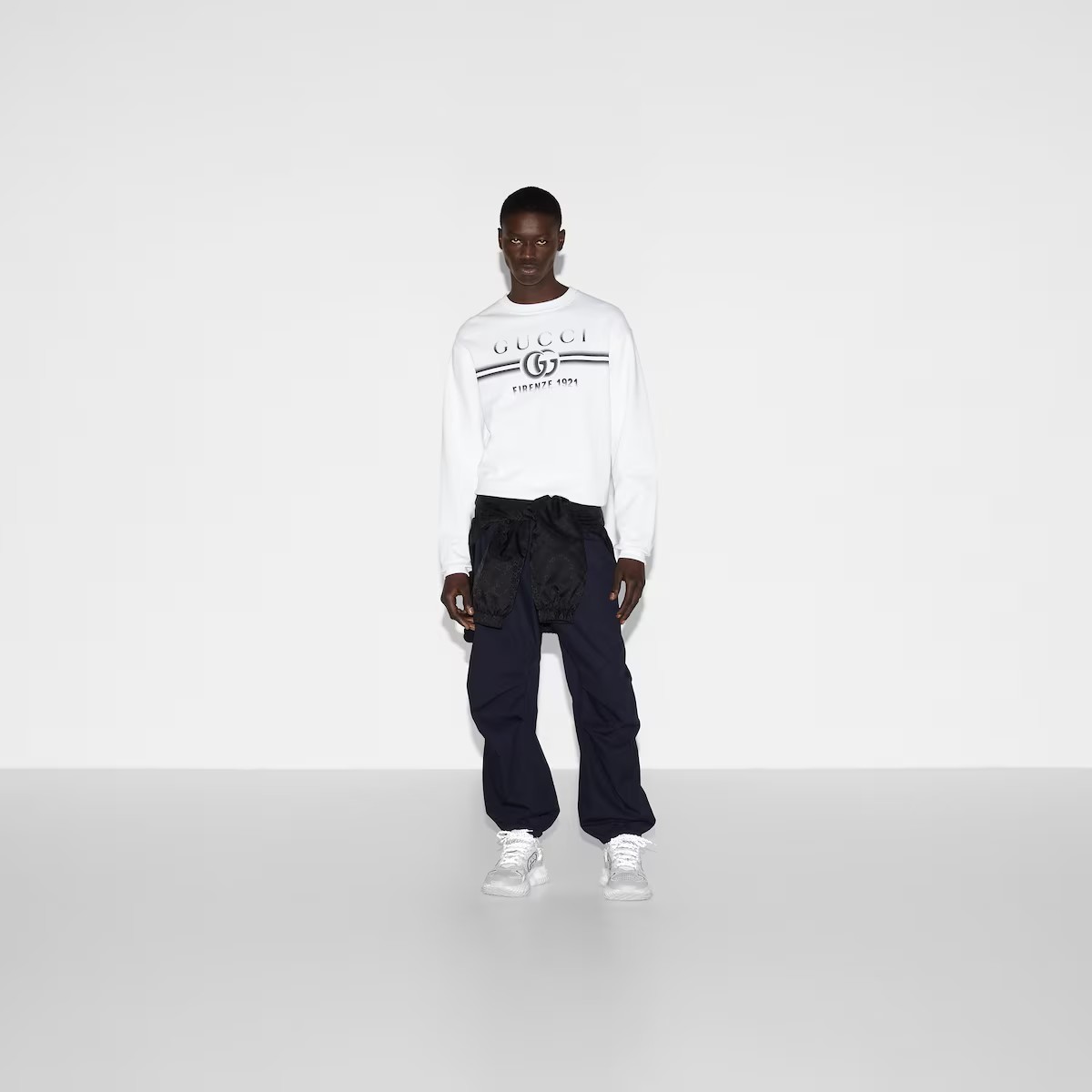 이탈리아 해변의 여름 감성과 비치 클럽의 영감을 표현하는 구찌 리도 컬렉션의 아이템입니다. 하우스의 상징적인 코드와 세련미 있는 패턴을 현대적인 방식으로 재해석한 프리폴 컬렉션을 만나보세요. 중앙에 바랜 듯한 구찌 더블 G 피렌체 1921 프린트를 더한 코튼 저지 소재의 여유로운 스웨트셔츠.