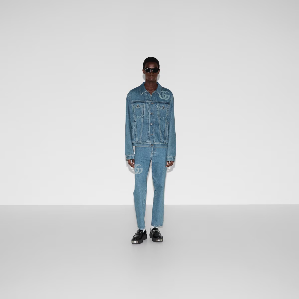 2025 크루즈 컬렉션은 데일리 룩의 품격을 높이는 정교한 디테일로 데님에 대한 참신한 해석을 보여줍니다. 레이저 더블 G 로고와 구찌 재크론 라벨이 돋보이는 여유로운 핏의 워시드 인증 코튼 데님 재킷.