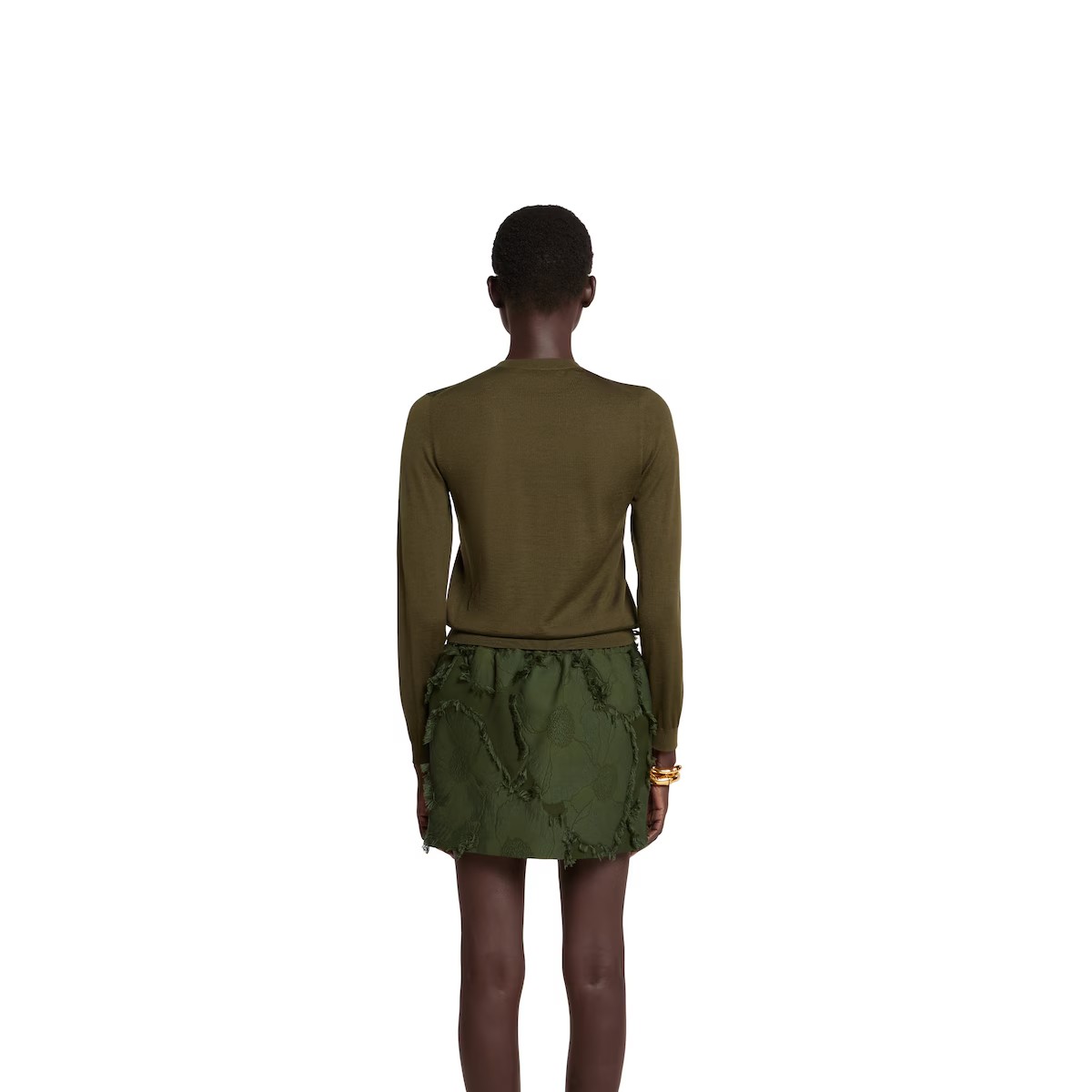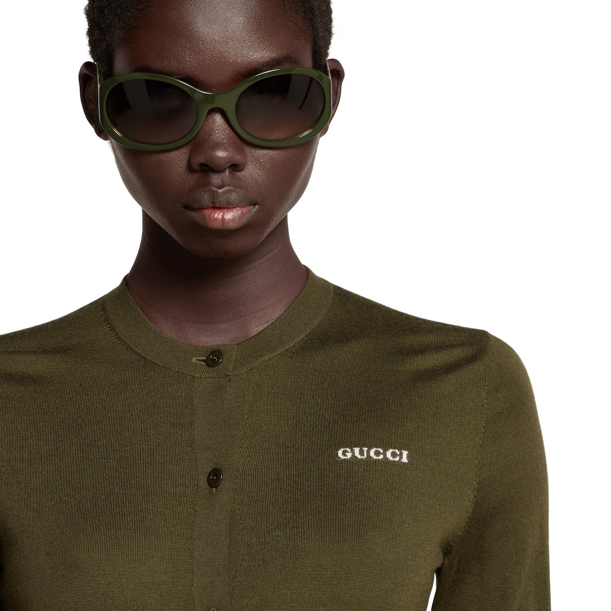 '캐주얼한 우아함'을 테마로 하며 세련된 니트웨어를 선보이는 2025 봄 여름 컬렉션의 크루넥 가디건.