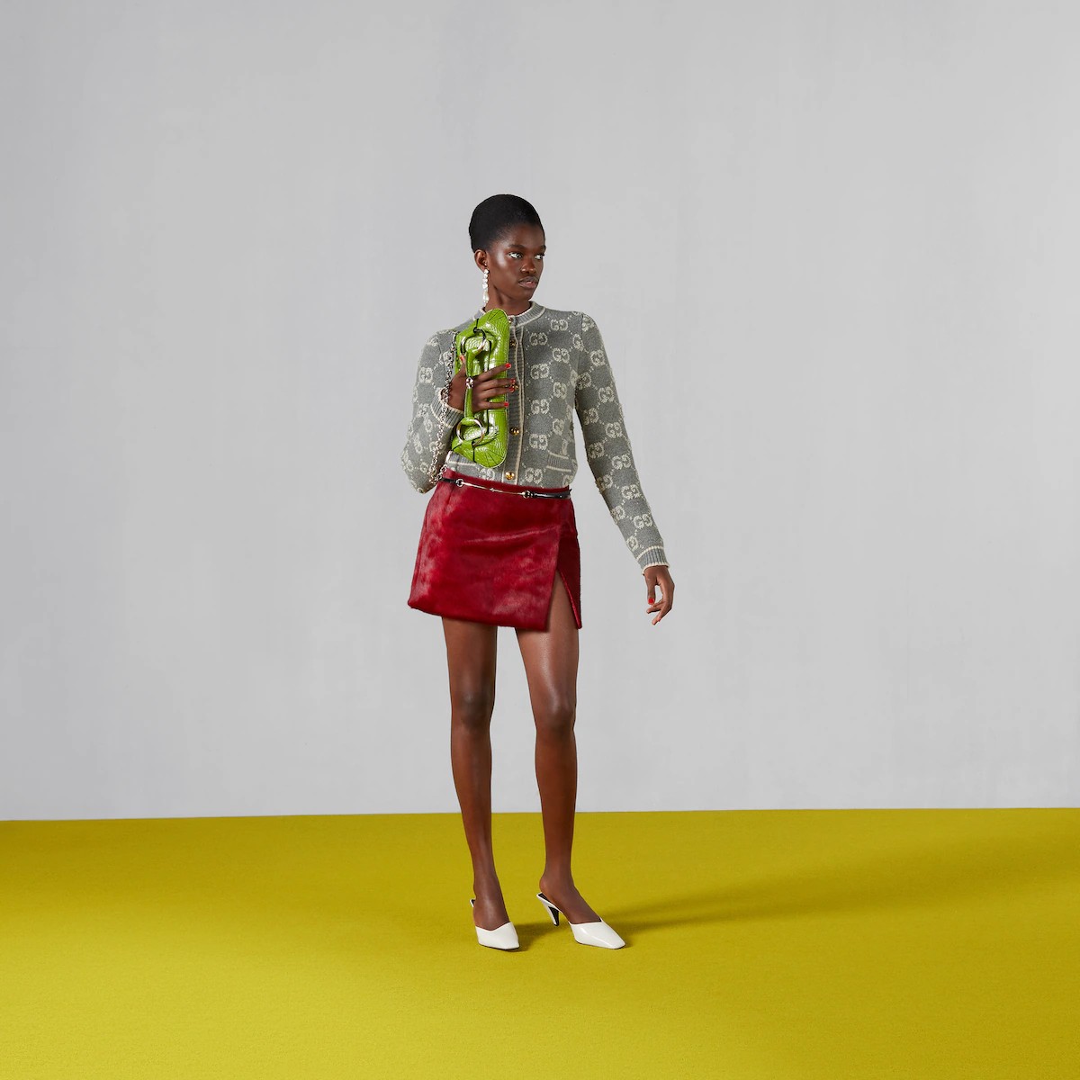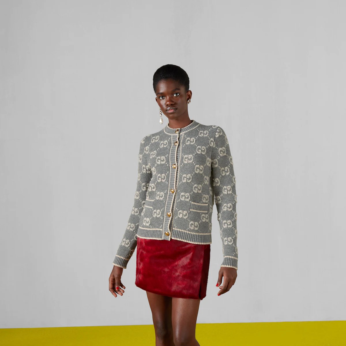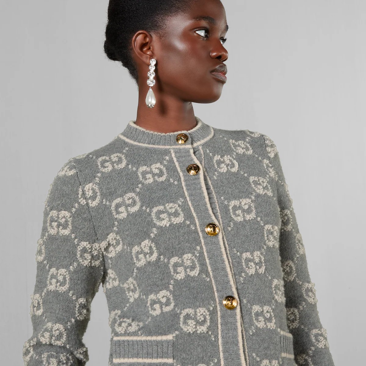 세련된 소재와 시퀸 장식에 라메 디테일, 섬세한 부클레 트위드까지, 새로워진 디자인으로 돌아온 GG 모티브. 이번 시즌 컬렉션을 장식한 GG 울 부클레 자카드 소재의 가디건. 레트로 GG 레진 버튼으로 우아한 분위기를 완성함