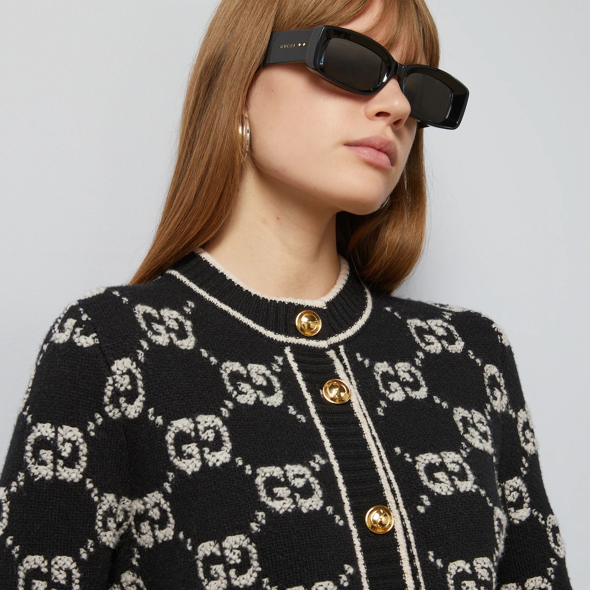 세련된 소재와 시퀸 장식에 라메 디테일, 섬세한 부클레 트위드까지, 새로워진 디자인으로 돌아온 GG 모티브. GG 울 부클레 자카드로 제작된 셀렉션의 가디건.