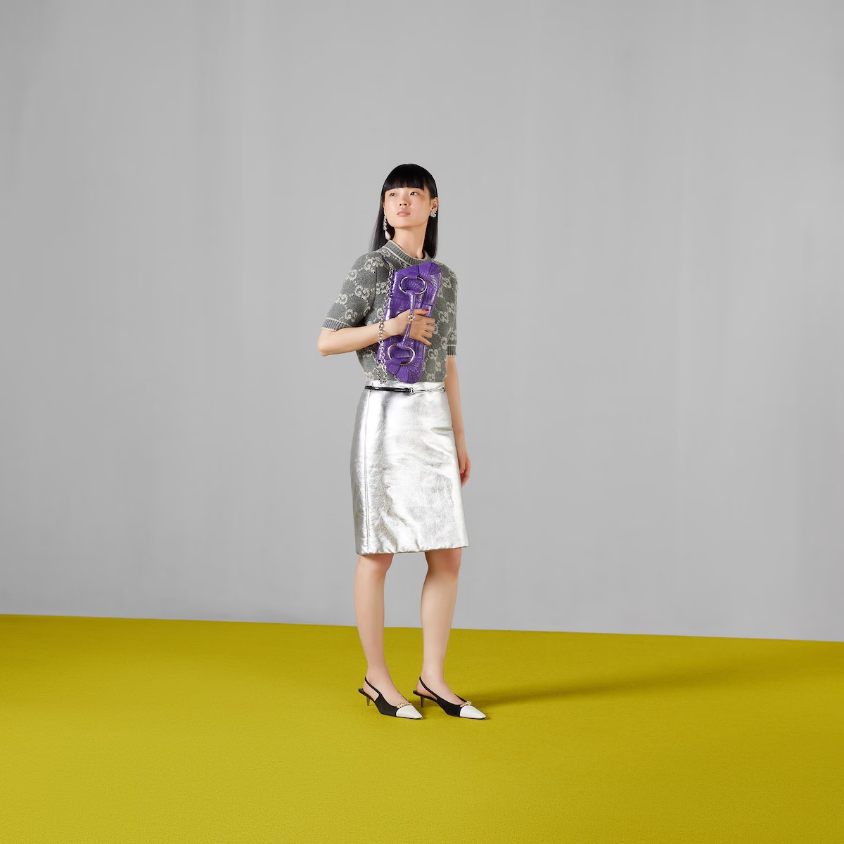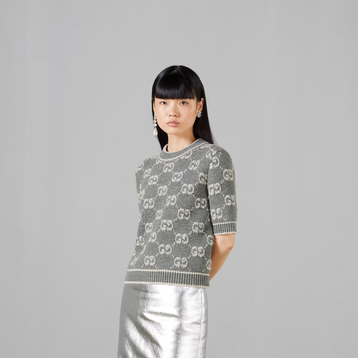 세련된 소재와 시퀸 장식에 라메 디테일, 섬세한 부클레 트위드까지, 새로워진 디자인으로 돌아온 GG 모티브. 이번 시즌 컬렉션을 장식한 GG 울 부클레 자카드 소재의 탑.