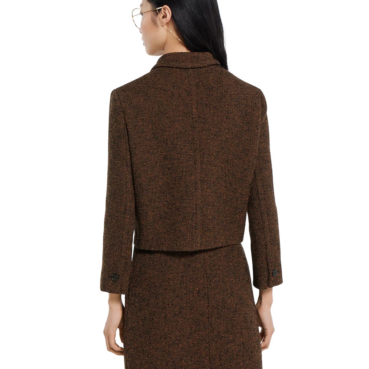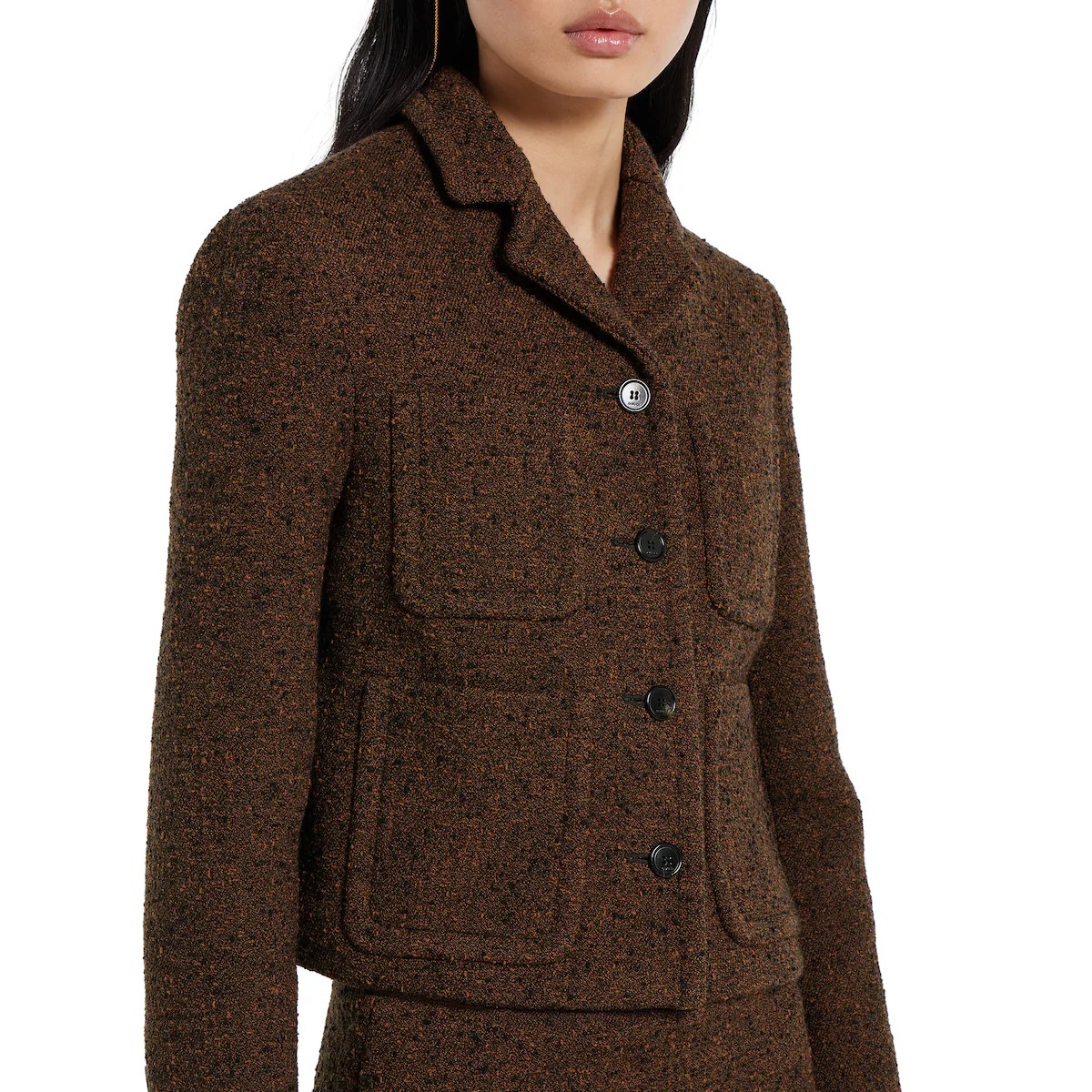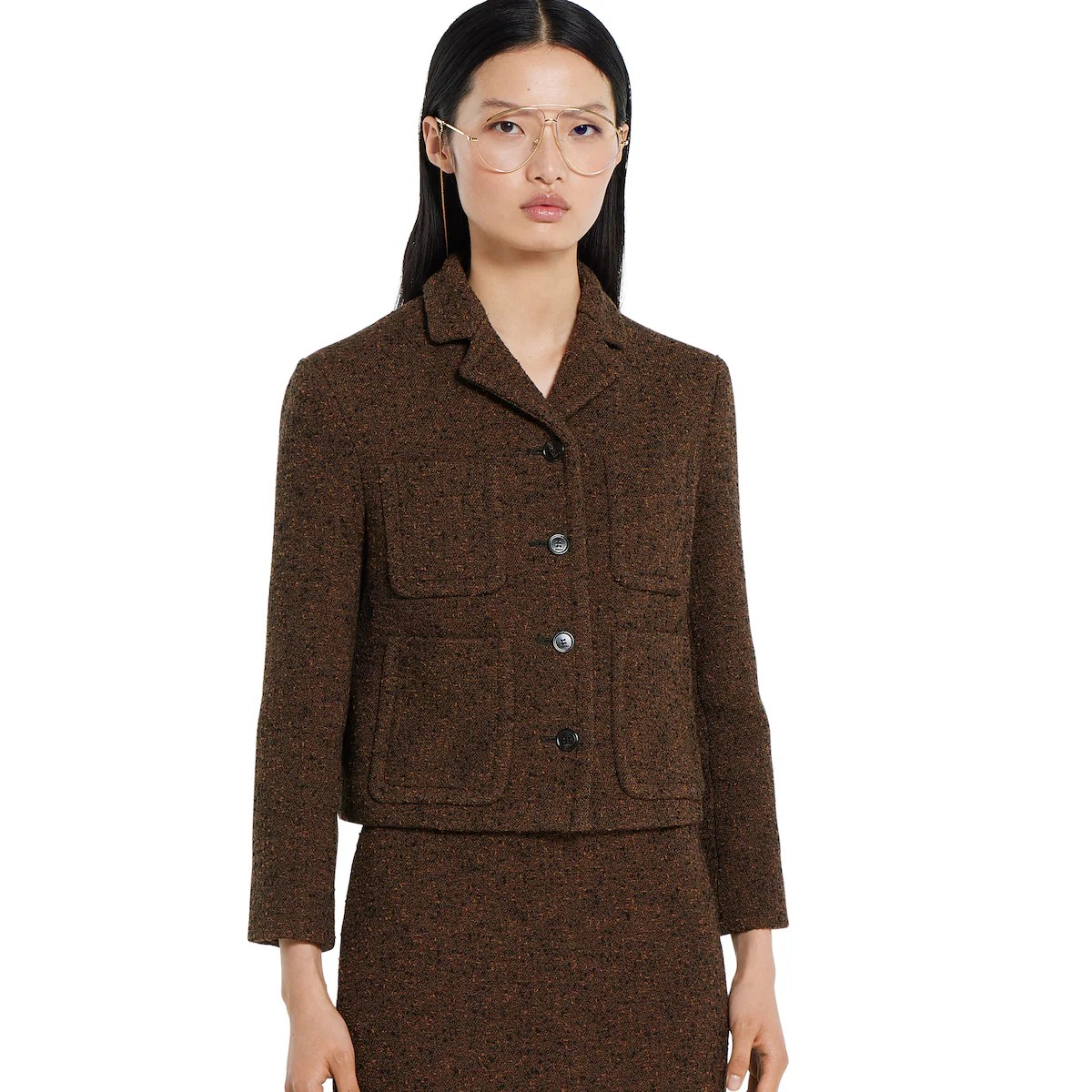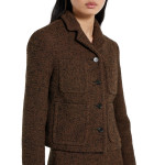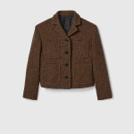 정교한 컷과 컴팩트한 비율로 세련되게 재해석한 2025 가을-겨울 컬렉션의 유틸리티 아이템. 피크 라펠, 앞면 플랩 패치 포켓 4개, 버튼업 앞면이 돋보이는 크롭 재킷. 하프 라이닝.