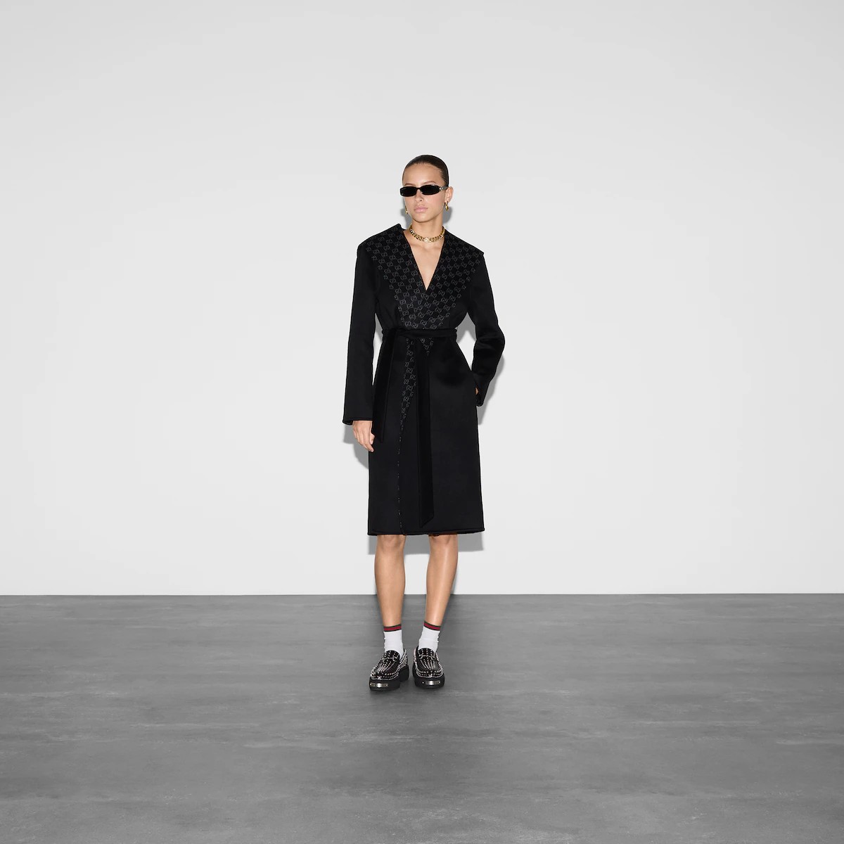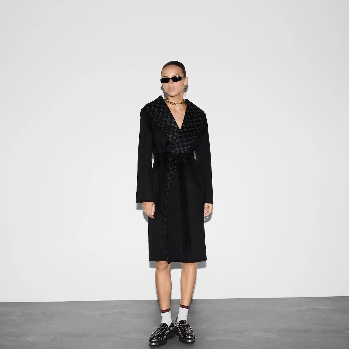 리버서블 GG 실크 울 블렌드 코트