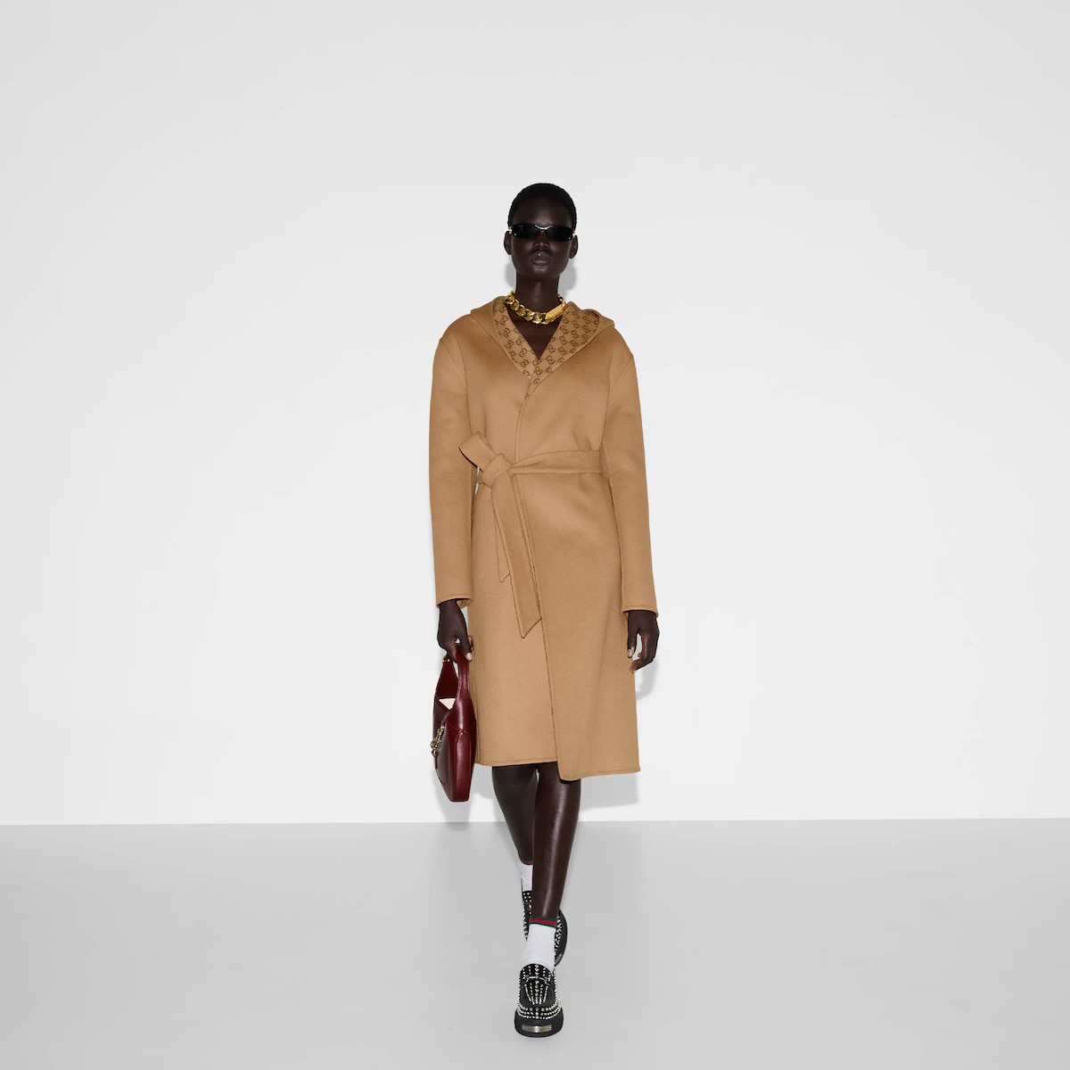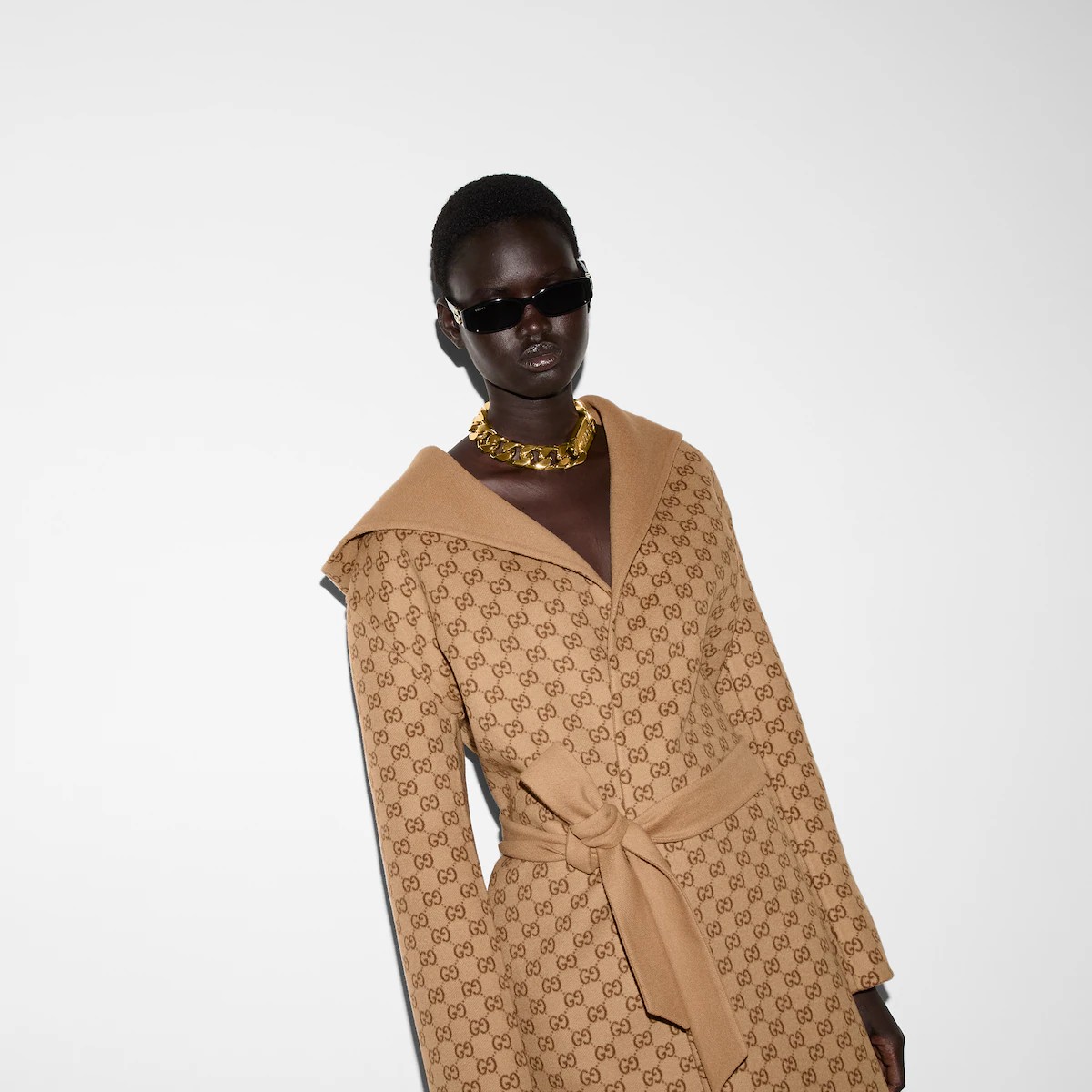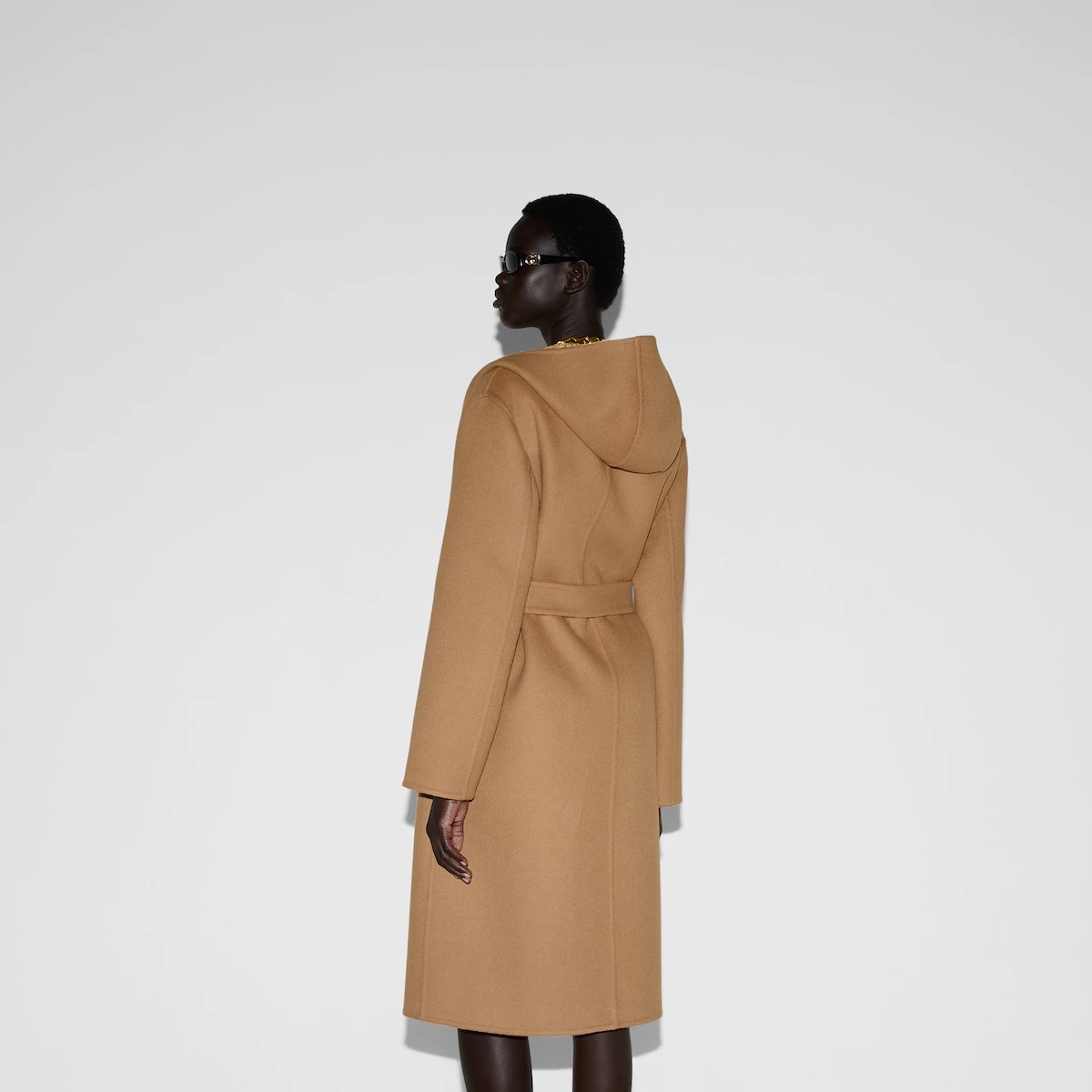 다가오는 쌀쌀한 계절을 위해 부드러운 질감과 보온성을 갖춘 고급 소재 채택 한쪽 면은 실크 울 블렌드, 반대쪽 면은 카멜/ 에보니 GG 실크 울 블렌드 소재를 사용한 리버서블 코트. 탈부착 가능한 리버서블 셀프 타이 벨트로 더욱 다양한 스타일 연출 가능.