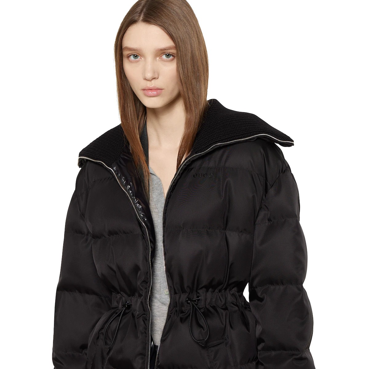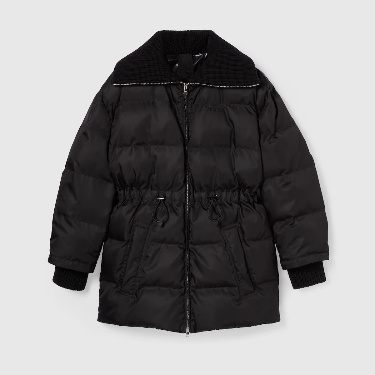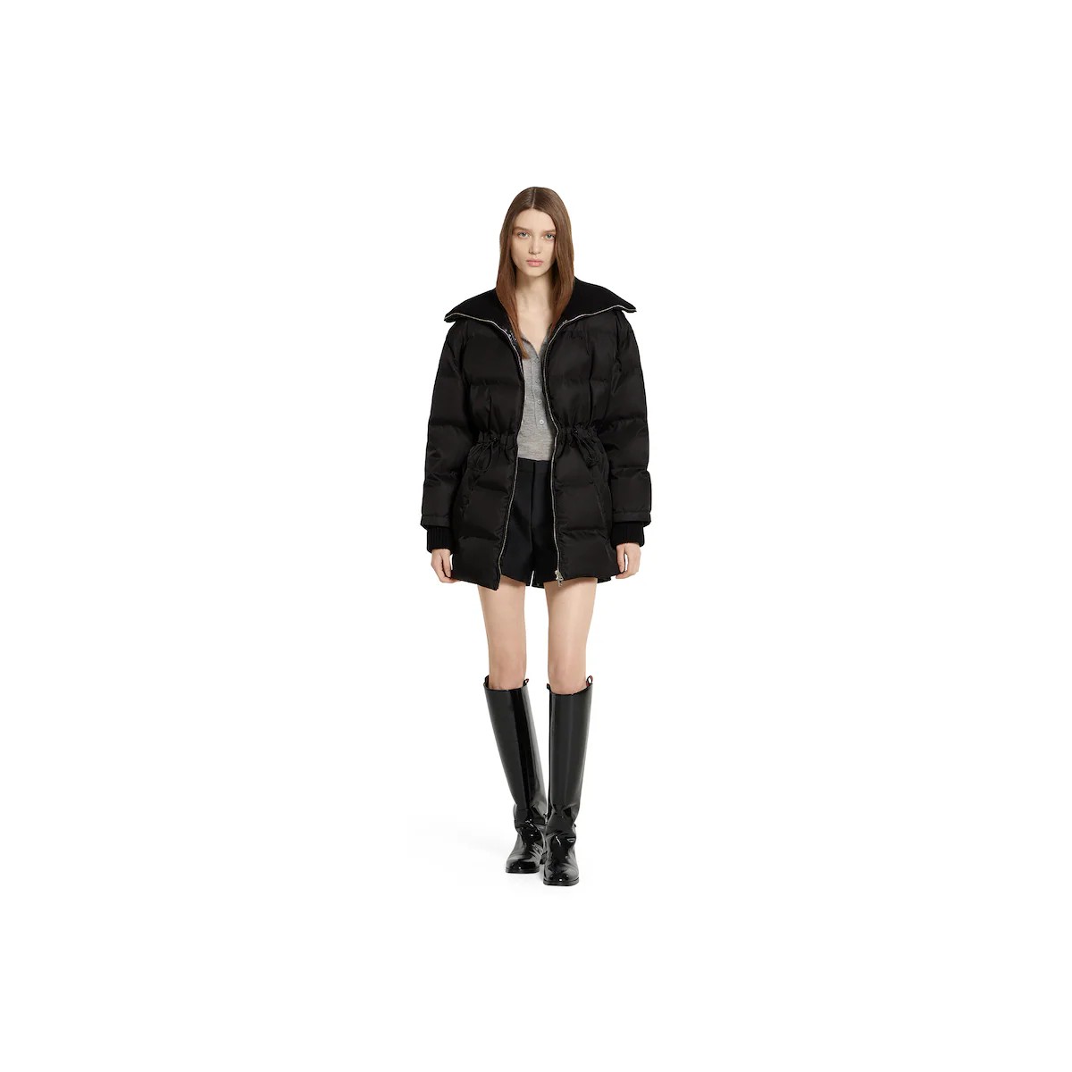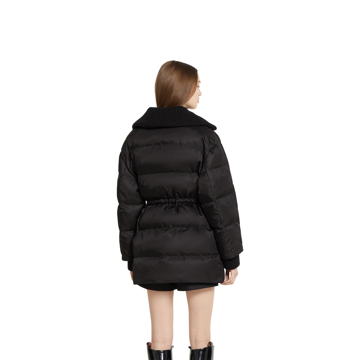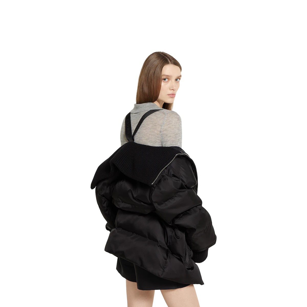 2025 프리폴 컬렉션에서 따뜻한 소재를 새롭게 재해석하여 전통적이면서도 현대적인 실루엣으로 선보인 세련된 아우터웨어. 개버딘 파인 나일론 소재에 카라 및 커프스의 니트가 대비를 이루고 은은한 로고 디테일로 디자인을 완성한 현대적 감성의 재킷.