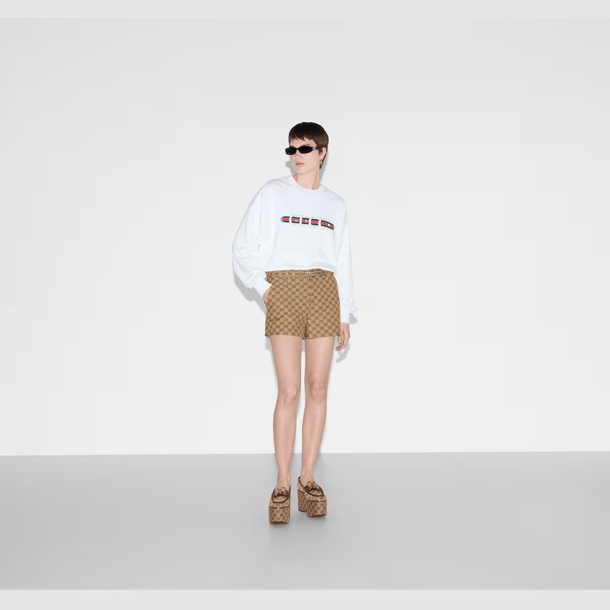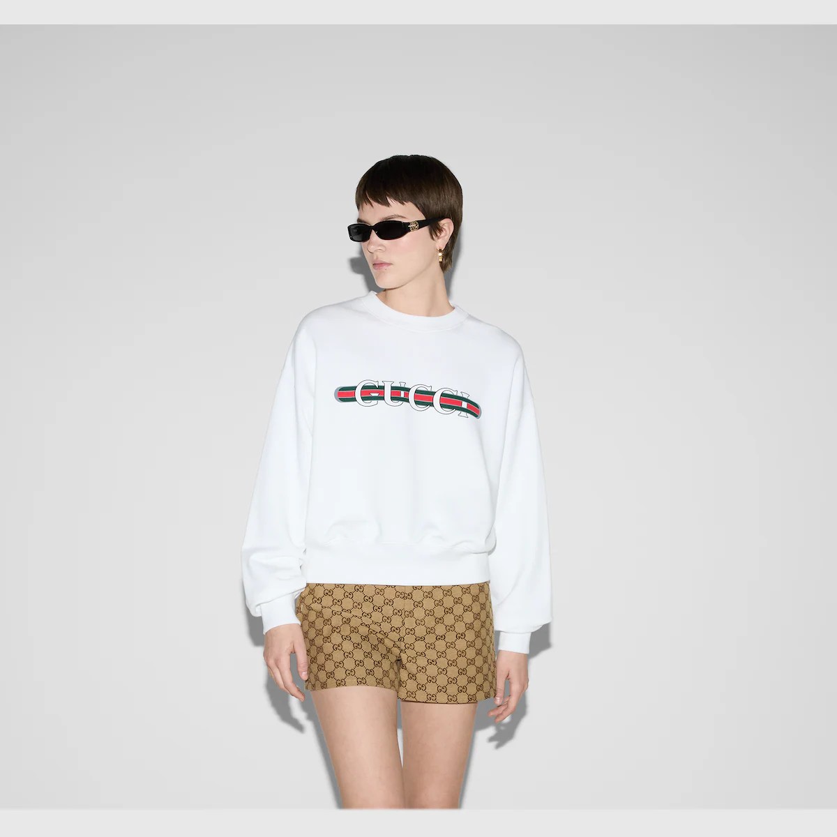 이탈리아 해변의 여름 감성과 비치 클럽의 영감을 표현하는 구찌 리도 컬렉션의 아이템입니다. 하우스의 상징적인 코드와 세련미 있는 패턴을 현대적인 방식으로 재해석한 프리폴 컬렉션을 만나보세요. 구찌 웹(Web) 프린트로 하우스의 감성을 더한 화이트 라이트 코튼 저지 스웨트셔츠.
