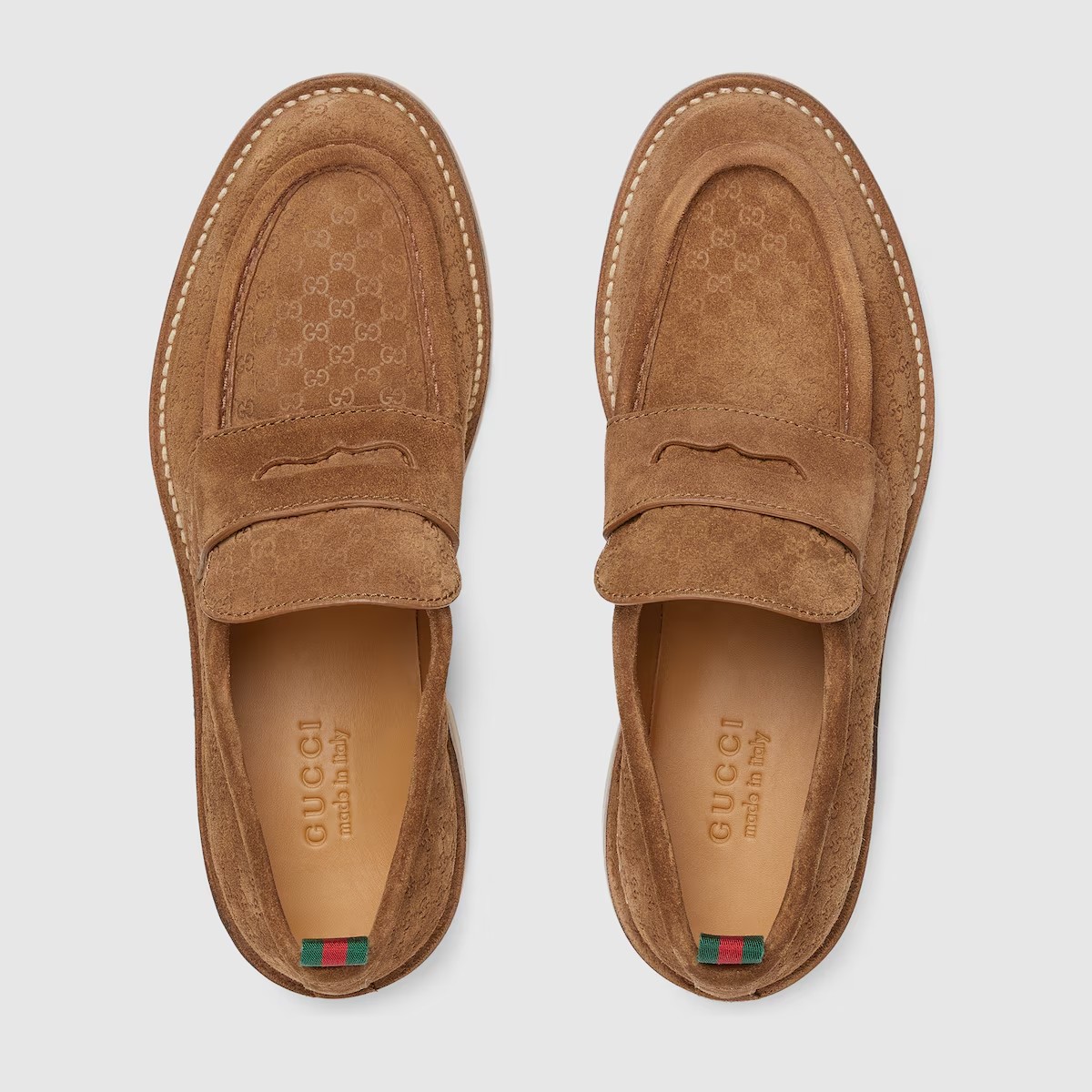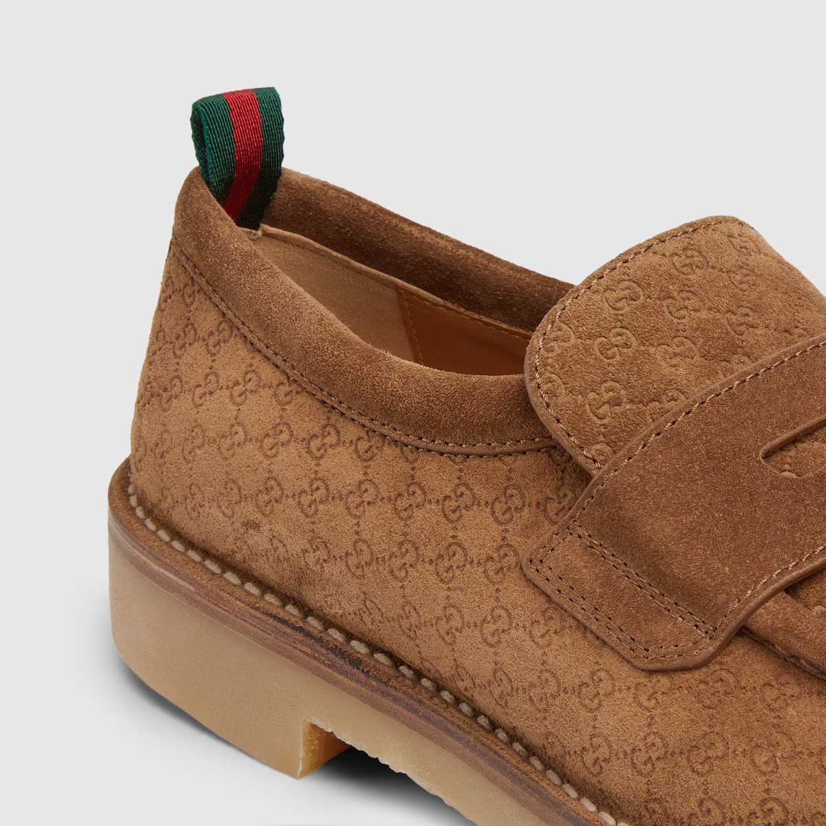독특한 하우스 코드인 그린/레드 웹(Web)으로 장식한 GG 스웨이드 남성 로퍼. 편안함을 극대화하는 러버 솔로 완성한 스타일.