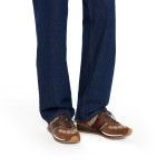 2025 가을-겨울 컬렉션, 클래식한 스타일에 현대적인 요소를 결합한 구찌 리-모션(Re-Motion) 스니커즈. GG 캔버스 소재에 시그니처 그린/레드 웹(Web)으로 완성한 모델. 특별한 가공을 거쳐 레트로한 매력을 자아내는 가볍고 유연한 아웃솔.