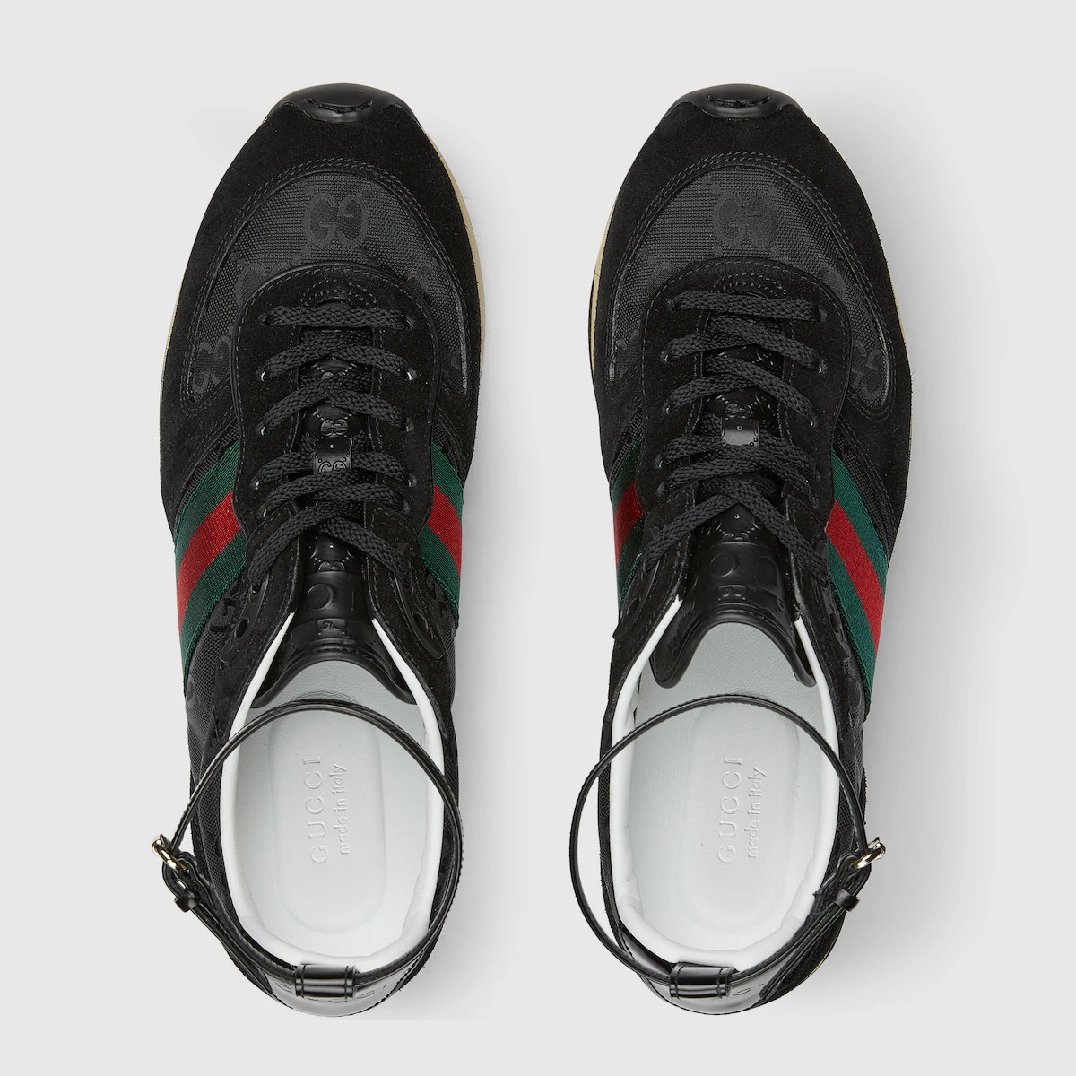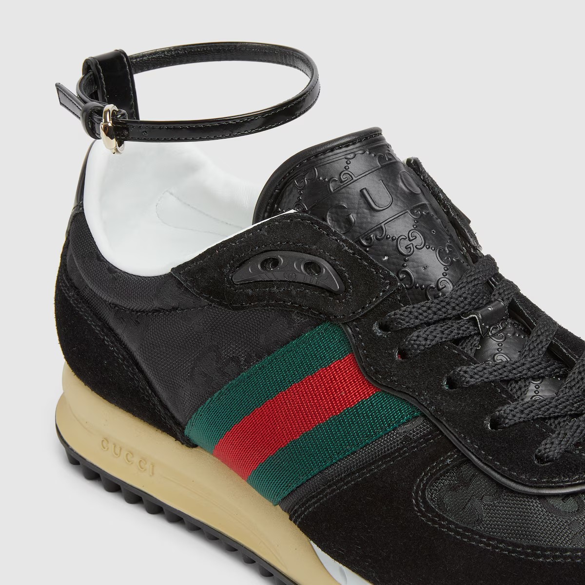 스포티한 실루엣에 조절 가능한 탈부착식 앵클 스트랩으로 디자인을 완성한 스니커즈. 특별한 가공을 거쳐 레트로한 매력을 자아내는 가볍고 유연한 아웃솔. 시그니처 그린/레드 웹(Web)으로 완성된 모델.