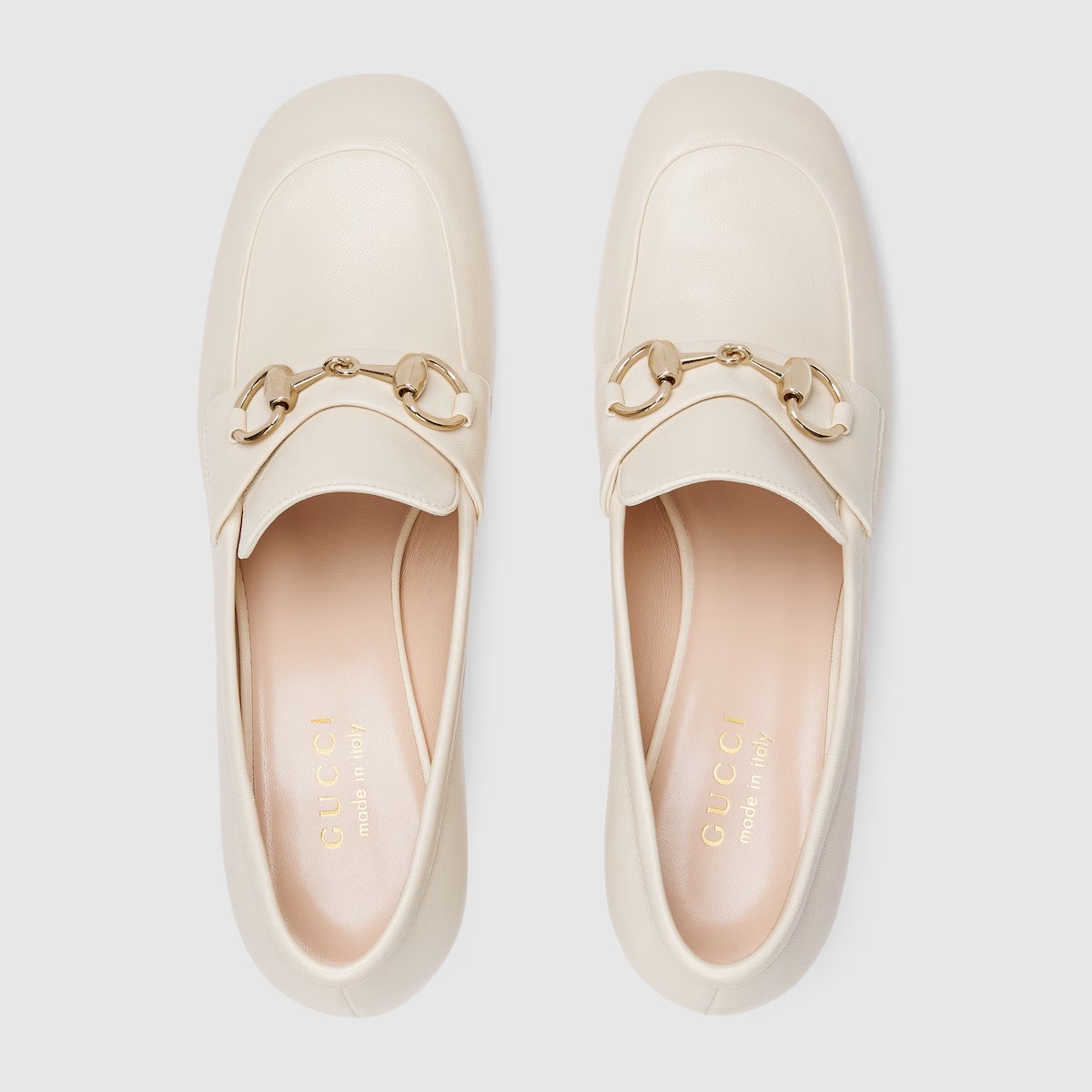 하우스의 승마 헤리티지를 반영하는 홀스빗이 수십 년에 걸쳐 깊은 역사가 담긴 현대적인 엠블럼으로 자리잡음. 유연한 레더로 제작된 여성 로퍼 펌프스.