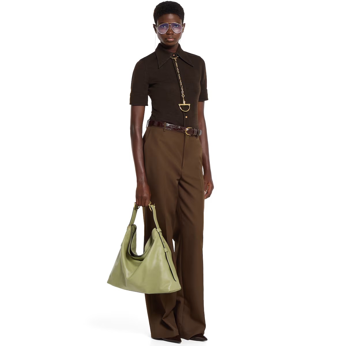 2025 가을-겨울 컬렉션, 편안한 실루엣에 숄더 스트랩의 시그니처 홀스빗 디테일로 고급스러움을 불어넣은 소프트 스무드 레더 구찌 베아트릭스 핸드백. 골드 톤 메탈 장식과 필수품을 안전하게 보관해주는 지퍼 포켓이 세련된 분위기를 더합니다. 일상 필수품을 편리하게 보관할 수 있도록 설계되어 우아함과 기능성을 겸비한 가방입니다.