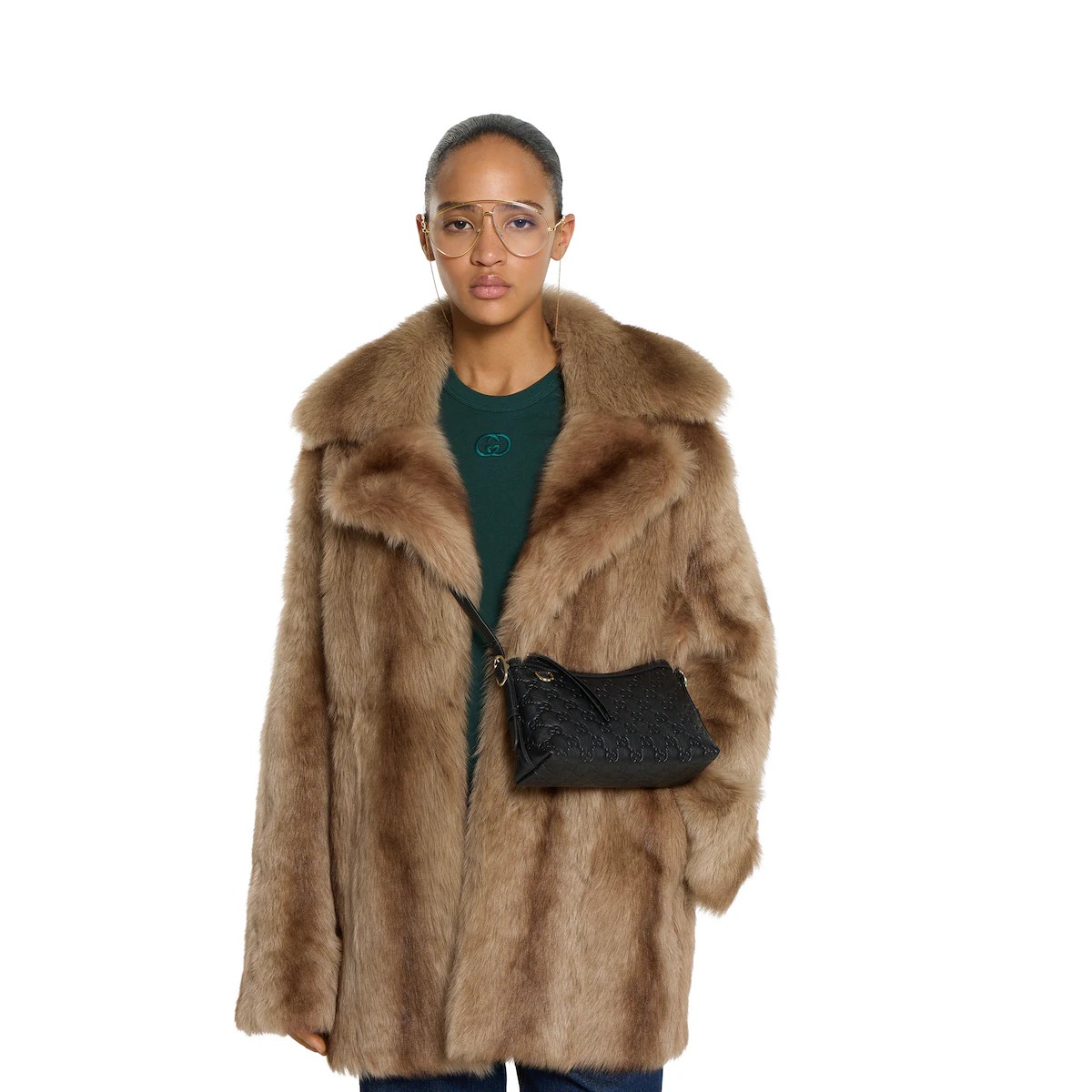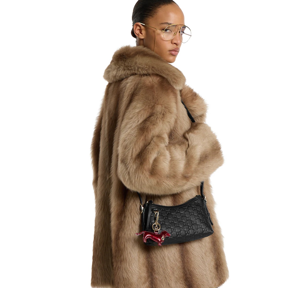 2025 가을-겨울 컬렉션, GG 엠블럼 컬렉션은 하우스의 우아함과 장인 정신의 역사를 재해석합니다. GG 엠보스 레더로 제작한 숄더백.