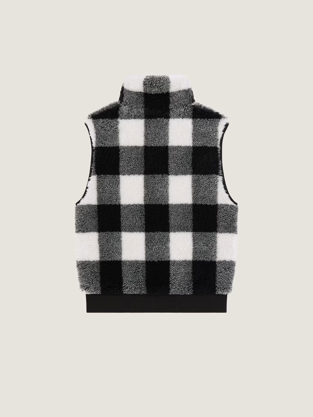 체크 무늬 슬리브리스 플리스 재킷