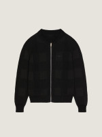 크리스탈 자수가 들어간 울 니트 소재의 코쿤 봄버 재킷