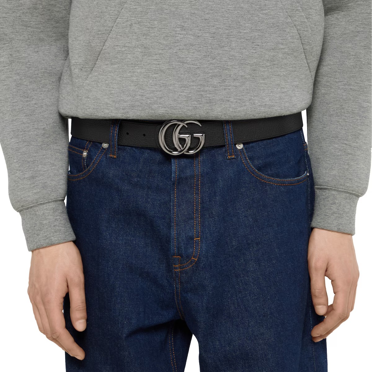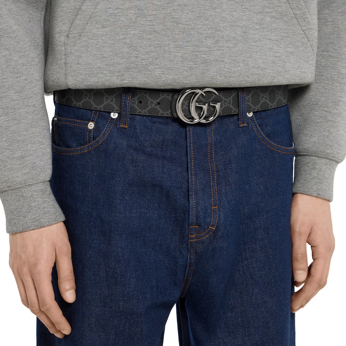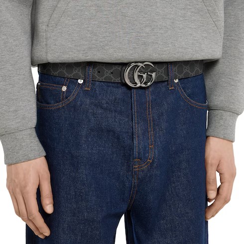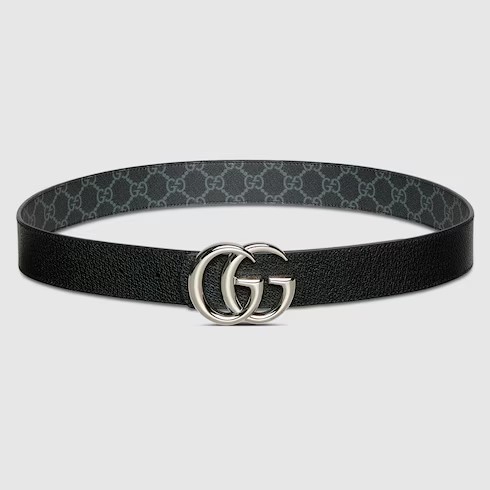 한쪽 면에는 하우스 시그니처 모티브를, 반대쪽 면에는 자연스러운 컬러의 레더를 배치한 GG 마몽 리버서블 버클 벨트. 시그니처 더블 G 버클로 스타일을 완성한 레더 및 GG 모노그램 코팅 소재의 리버서블 벨트.