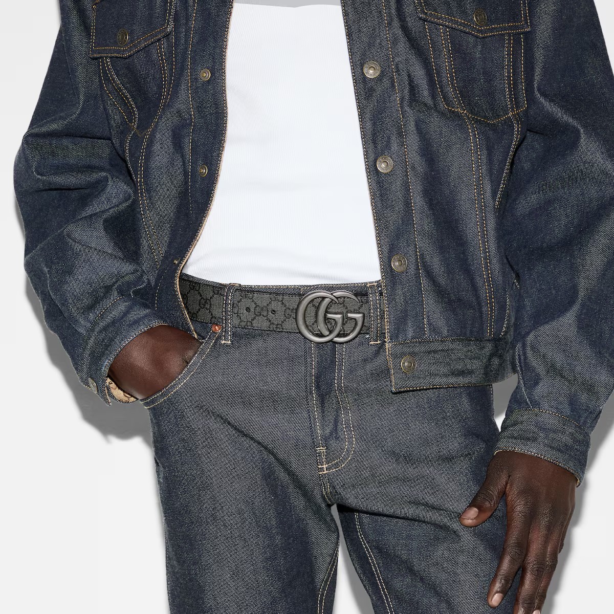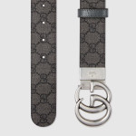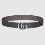 1970년대의 GG 메탈 장식을 현대적인 스타일로 선보이며 매 시즌 발전하는 GG 마몽의 상징적인 디자인. 뒤집어서 그레이 레더로 새롭게 연출 가능한 그레이/블랙 GG 수프림 캔버스 벨트.