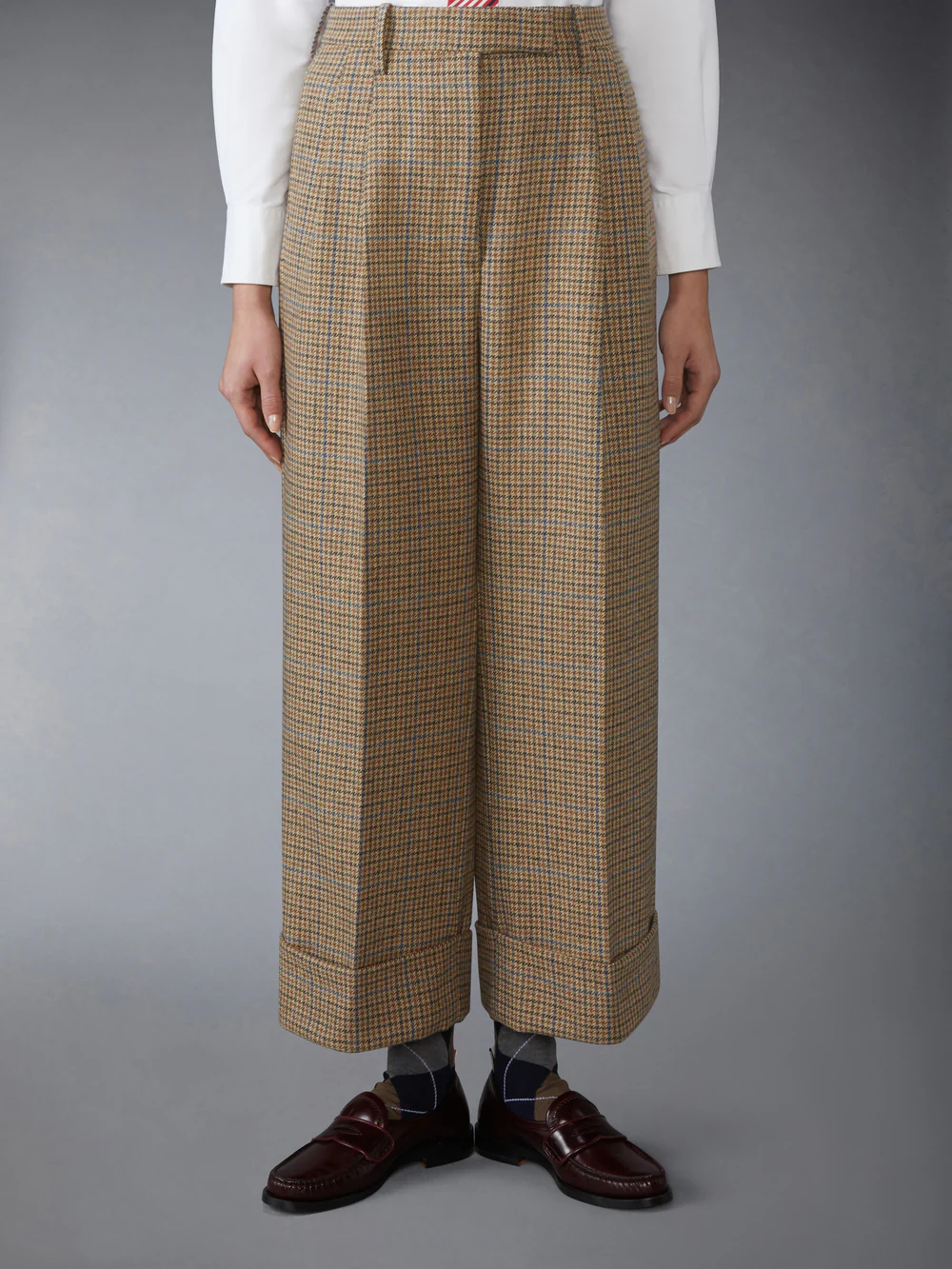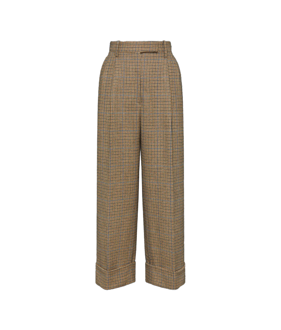 건클럽 체크 체비엇 트위드 더블 플리티드 팬츠 > 여성의류