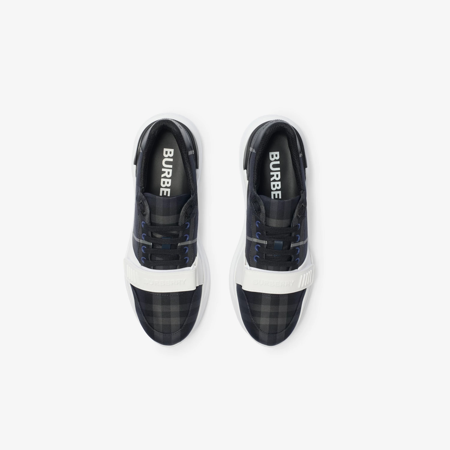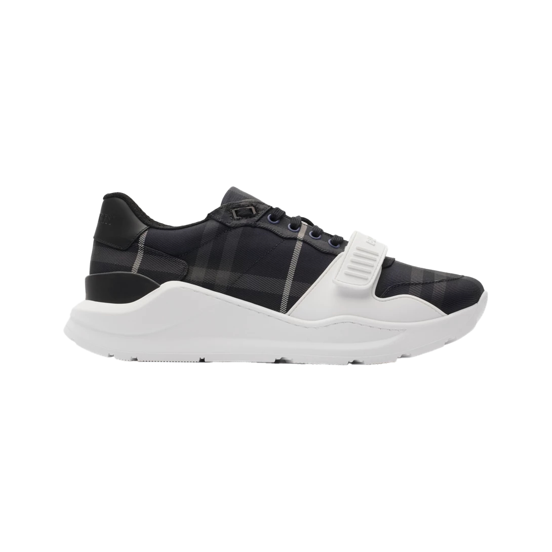 체크 스웨이드 레더 스니커즈 블랙