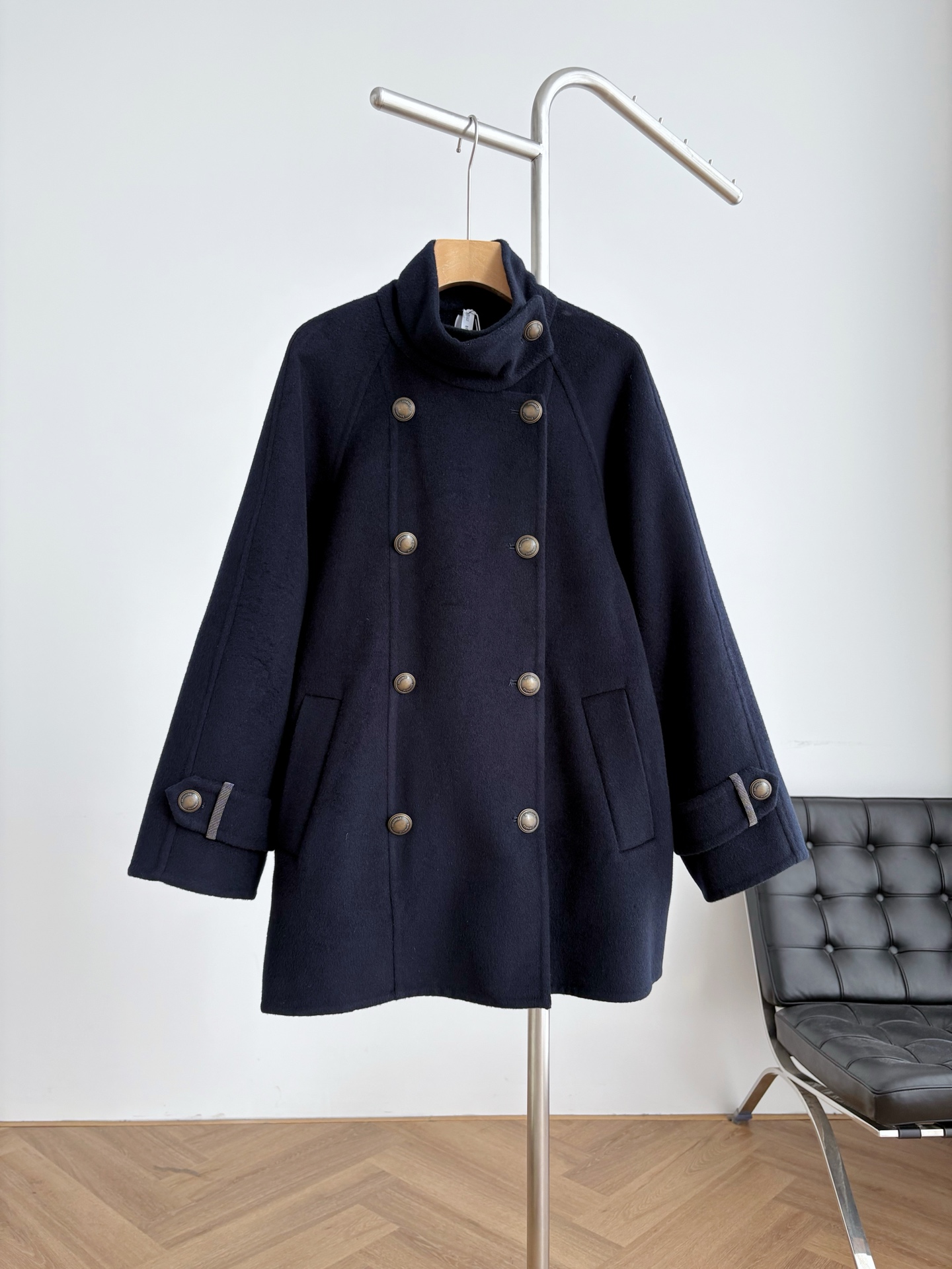 BC 스탠드업 칼라 더블브레스트 코트