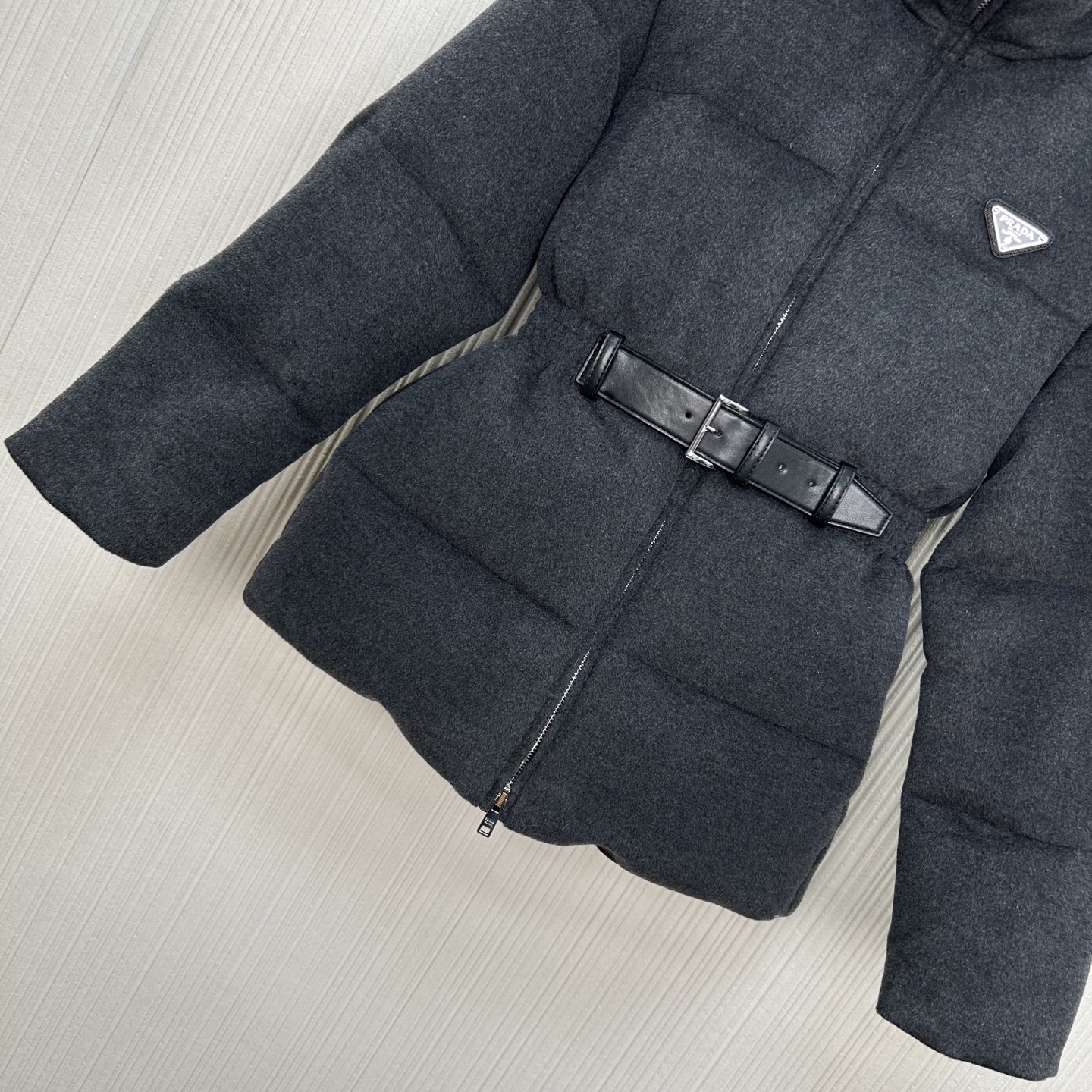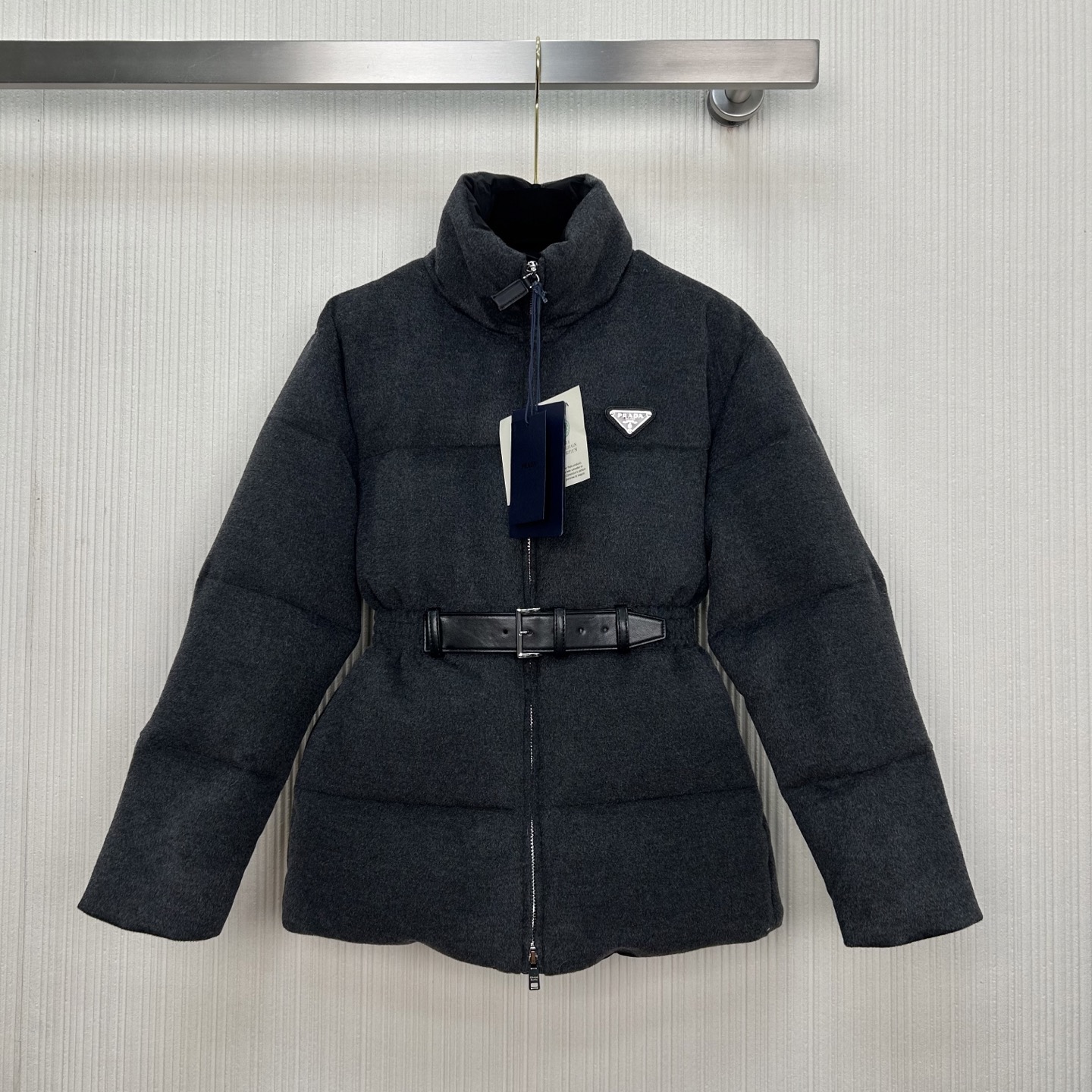 프라다 스탠드업 칼라벨트 울다운 재킷