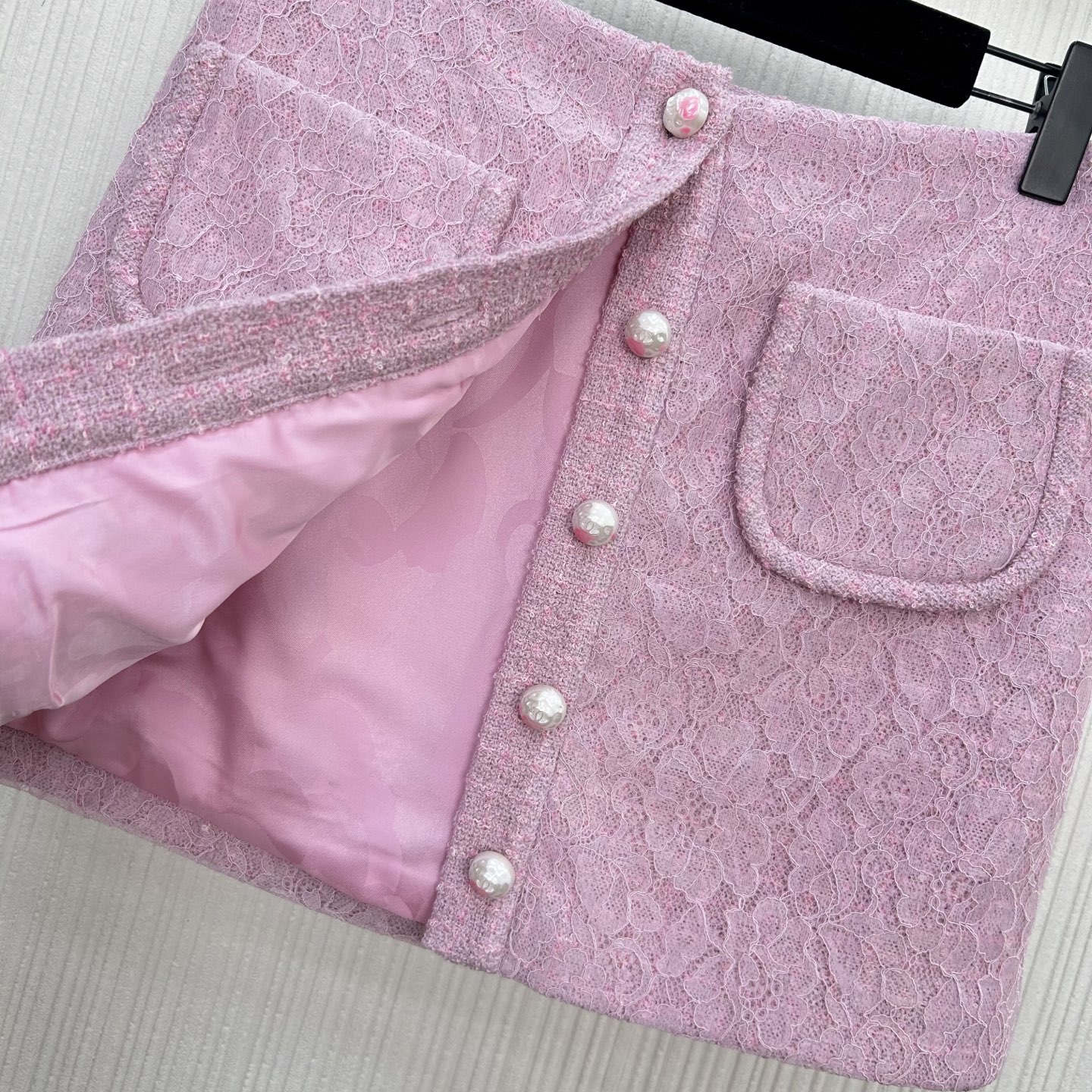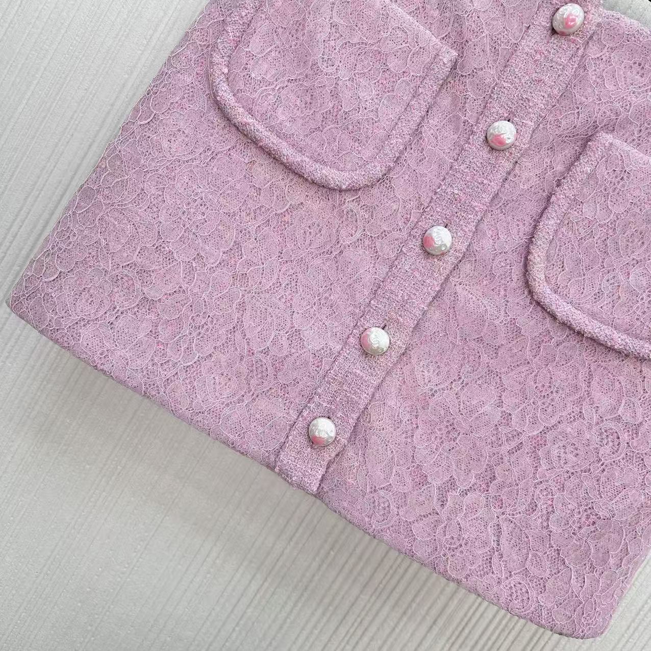 샤넬 핑클 울 레이스 칼라스커트