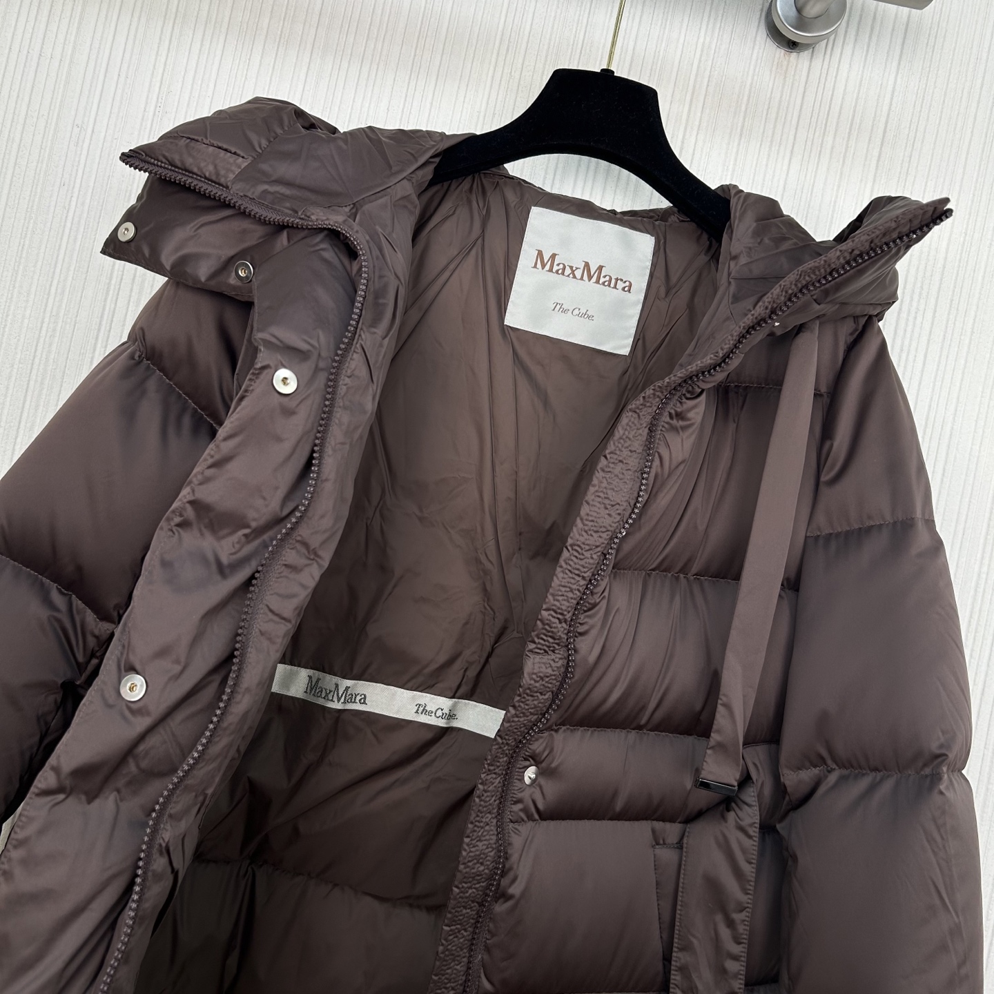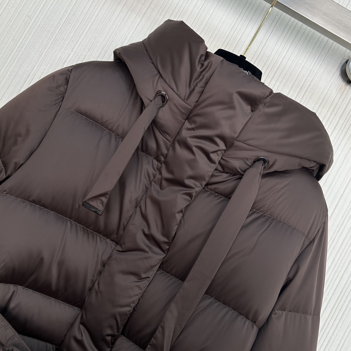 막스마라 미디엄 기장 후드 다운 재킷