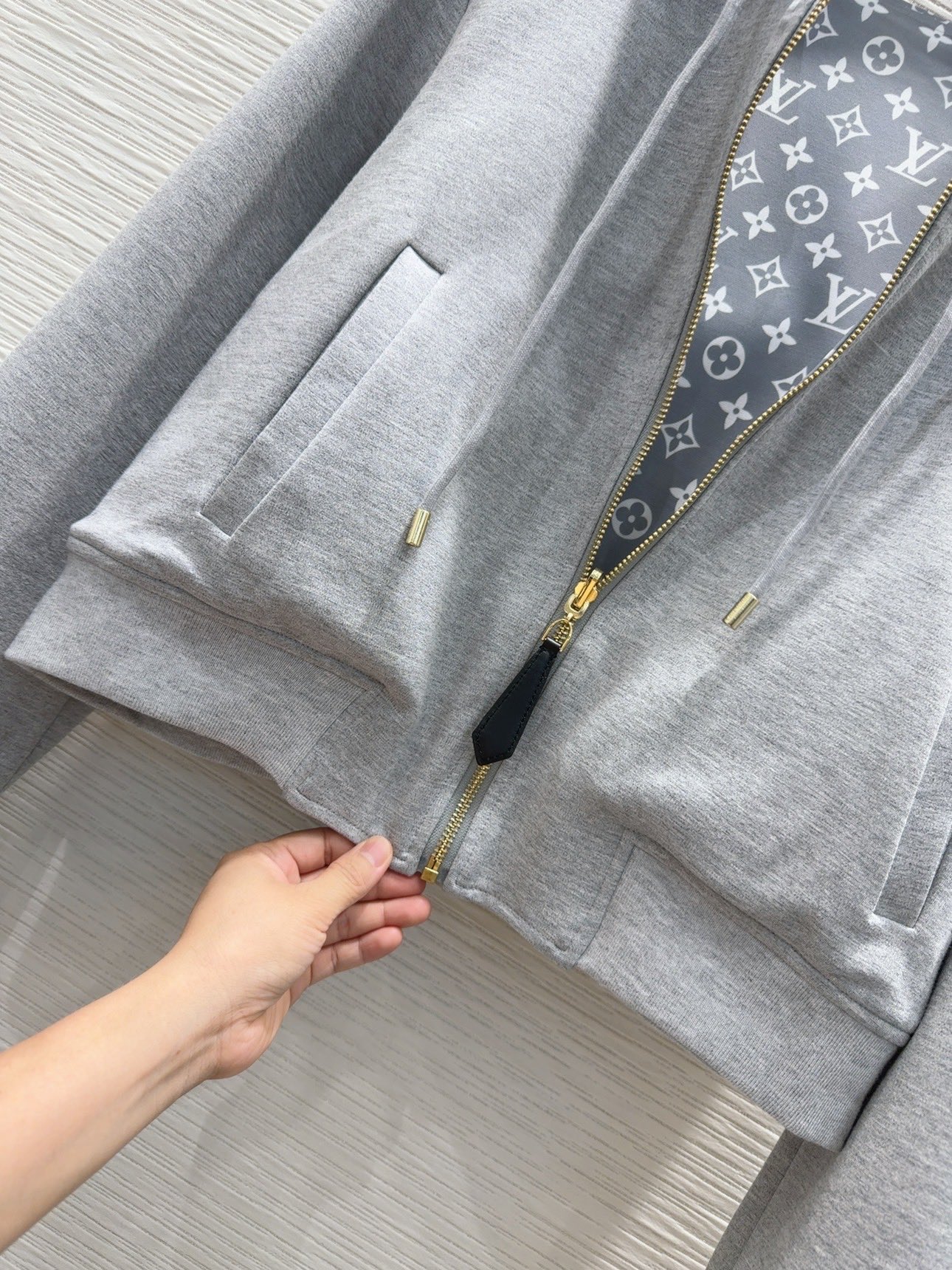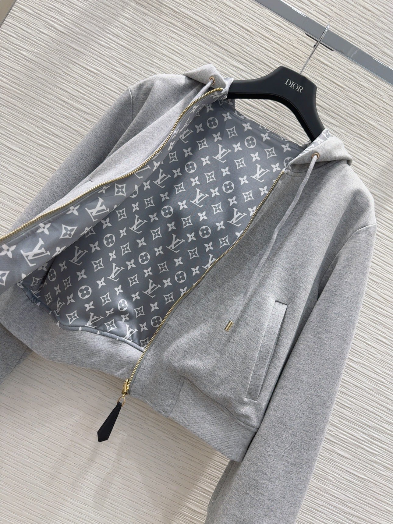 LV 솔리드 컬러 후드 자켓