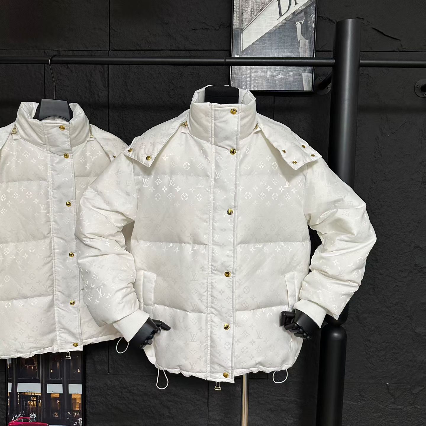 LV 후드 자카드 다운 패딩
