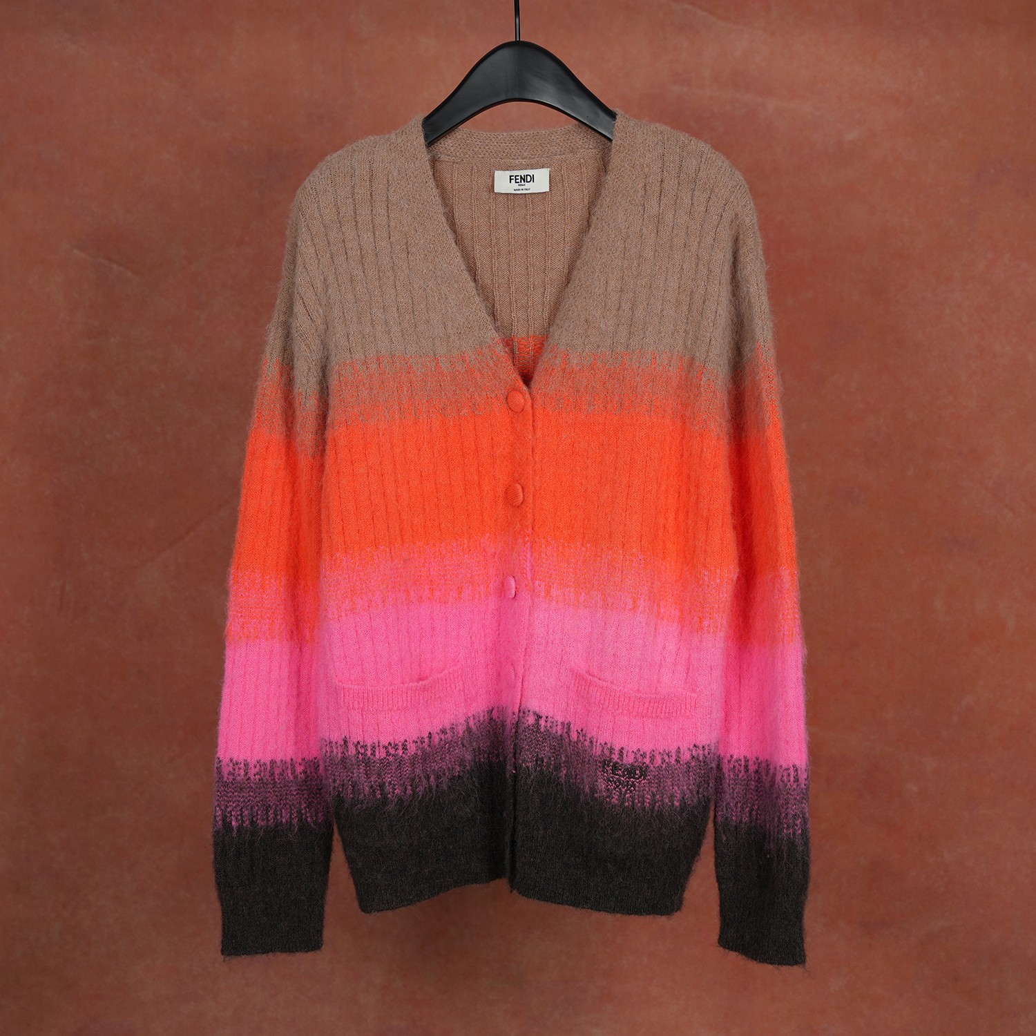 팬디 그라데이션 더블 포켓 V넥 카디건