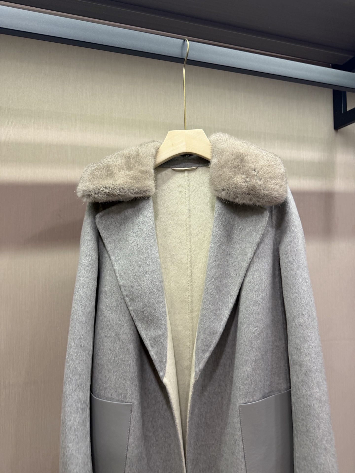 팬디 캐시미어 가죽포켓 코트