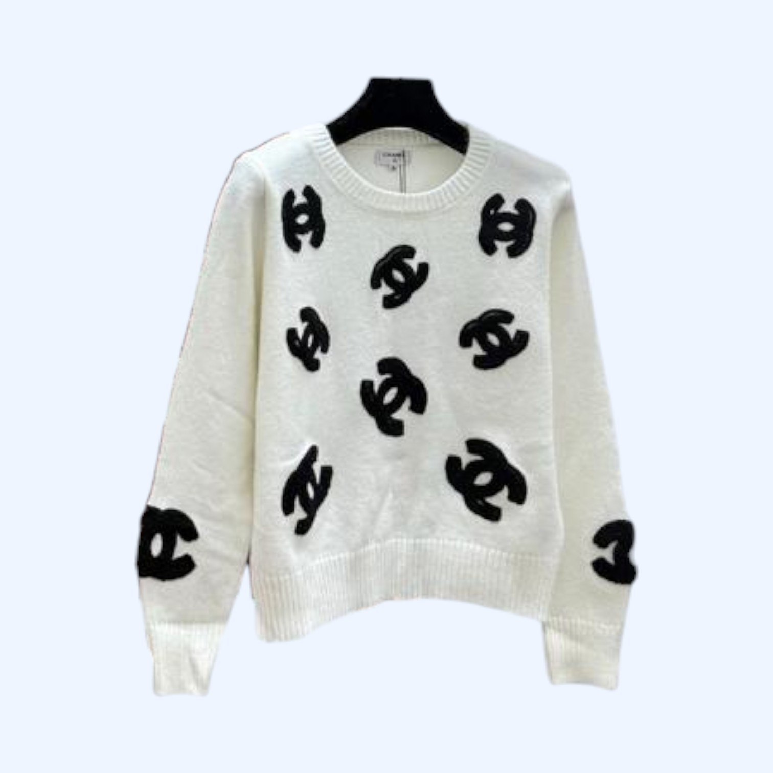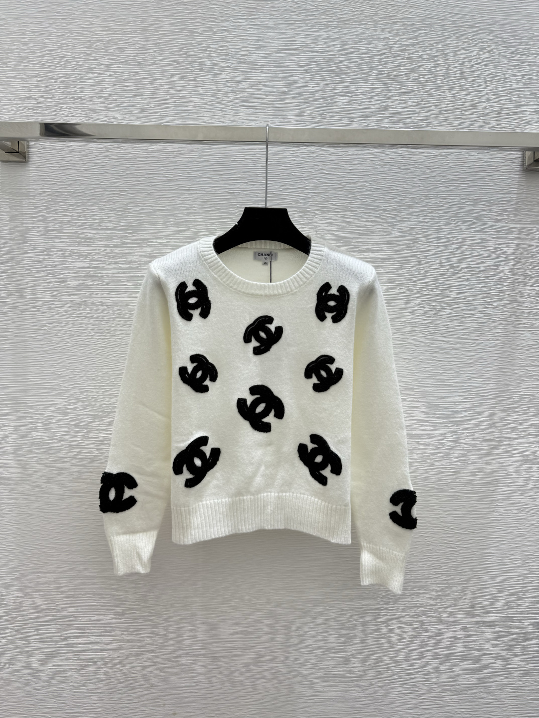 샤넬 문자자수 라운드넥 니트