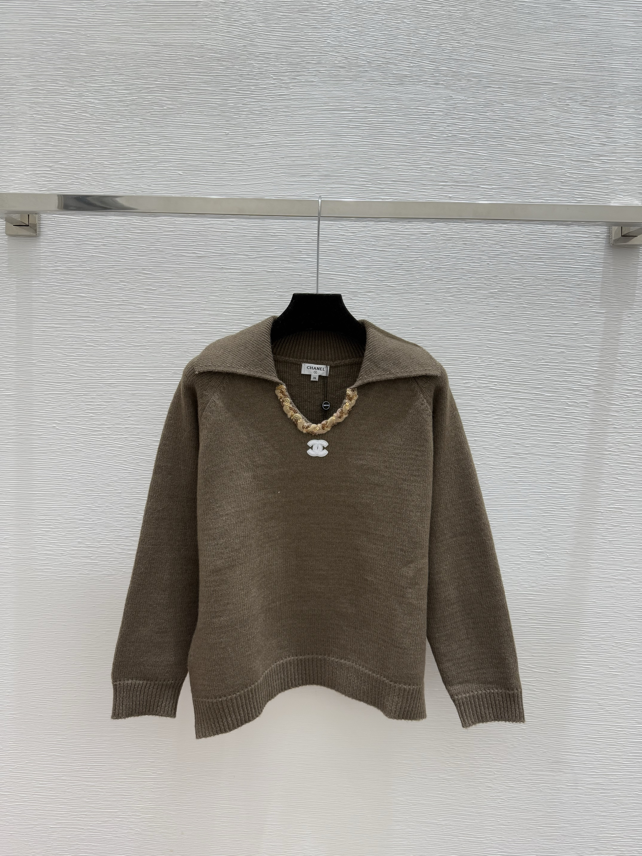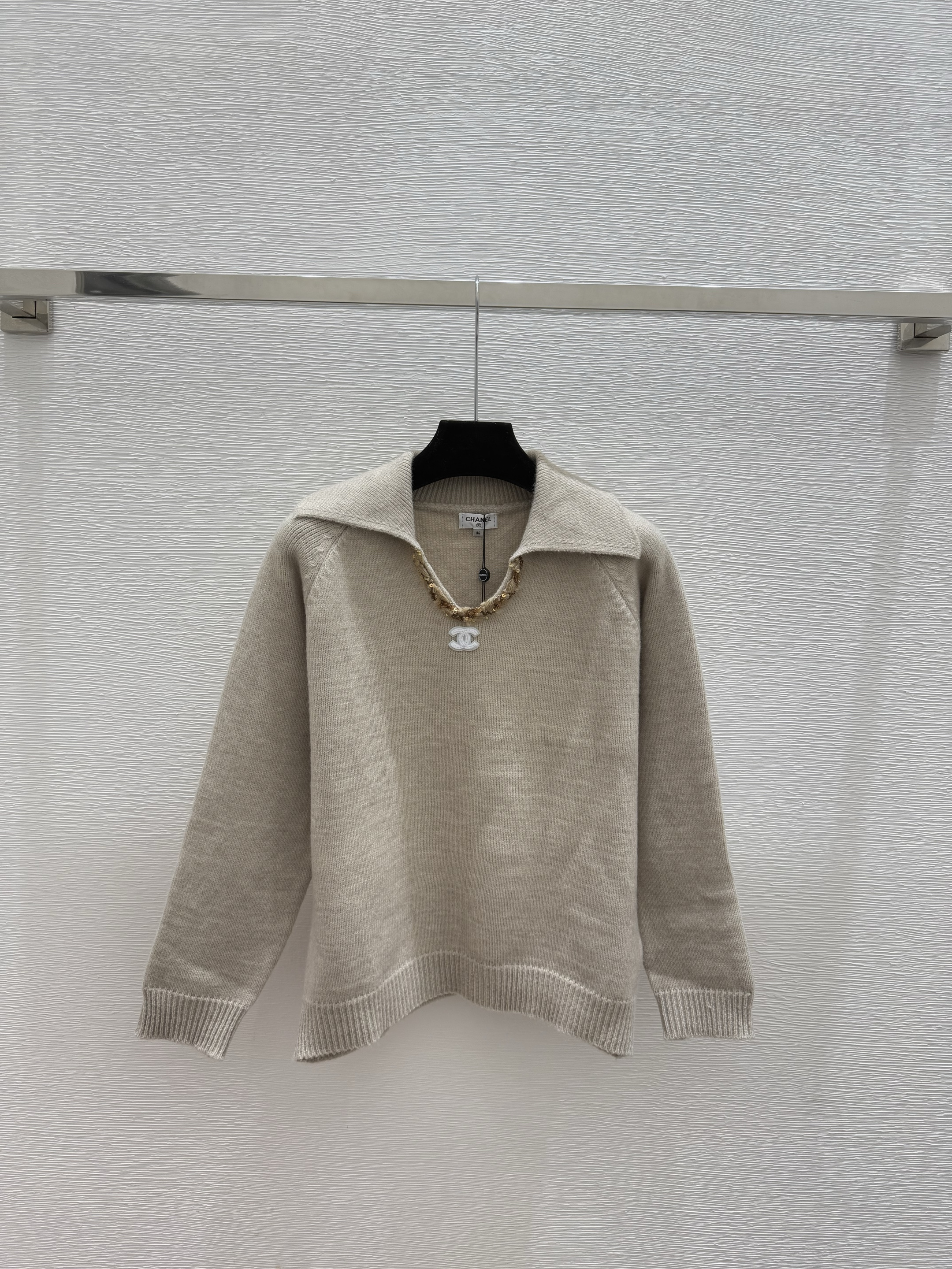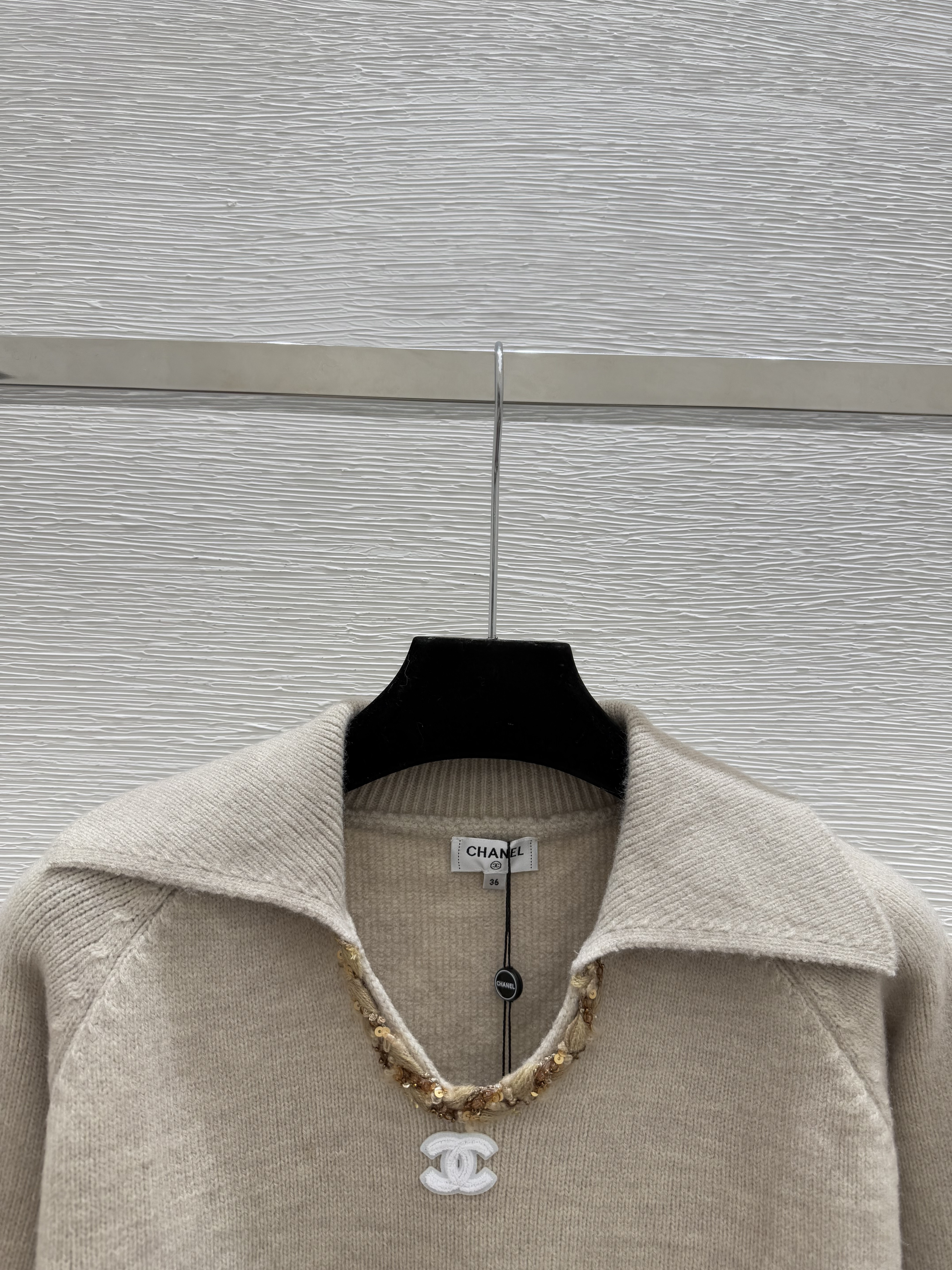 샤넬 솔리드 컬러 스팽글 라펠니트