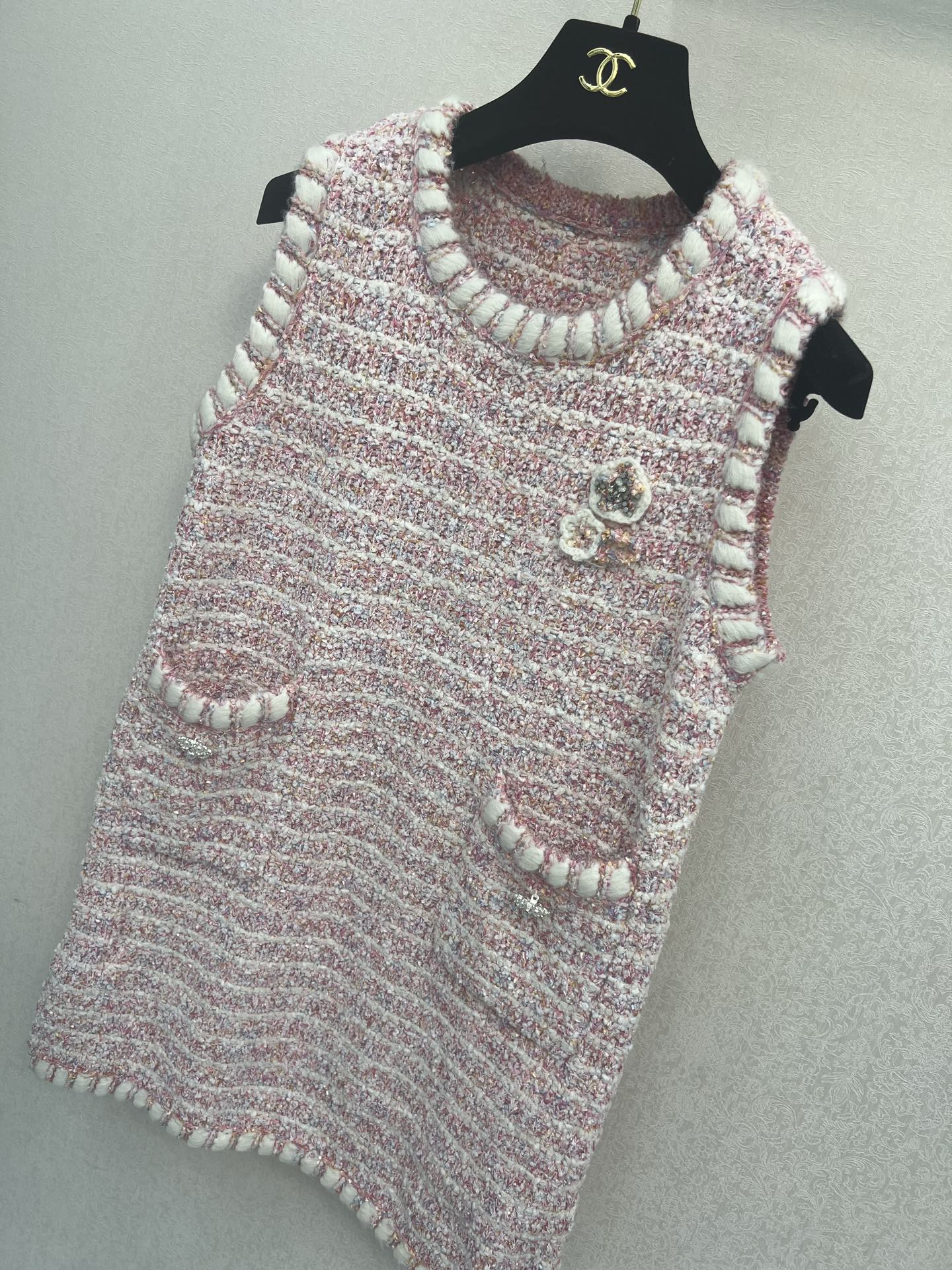 샤넬 진주 로고 롱슬라이브 니트