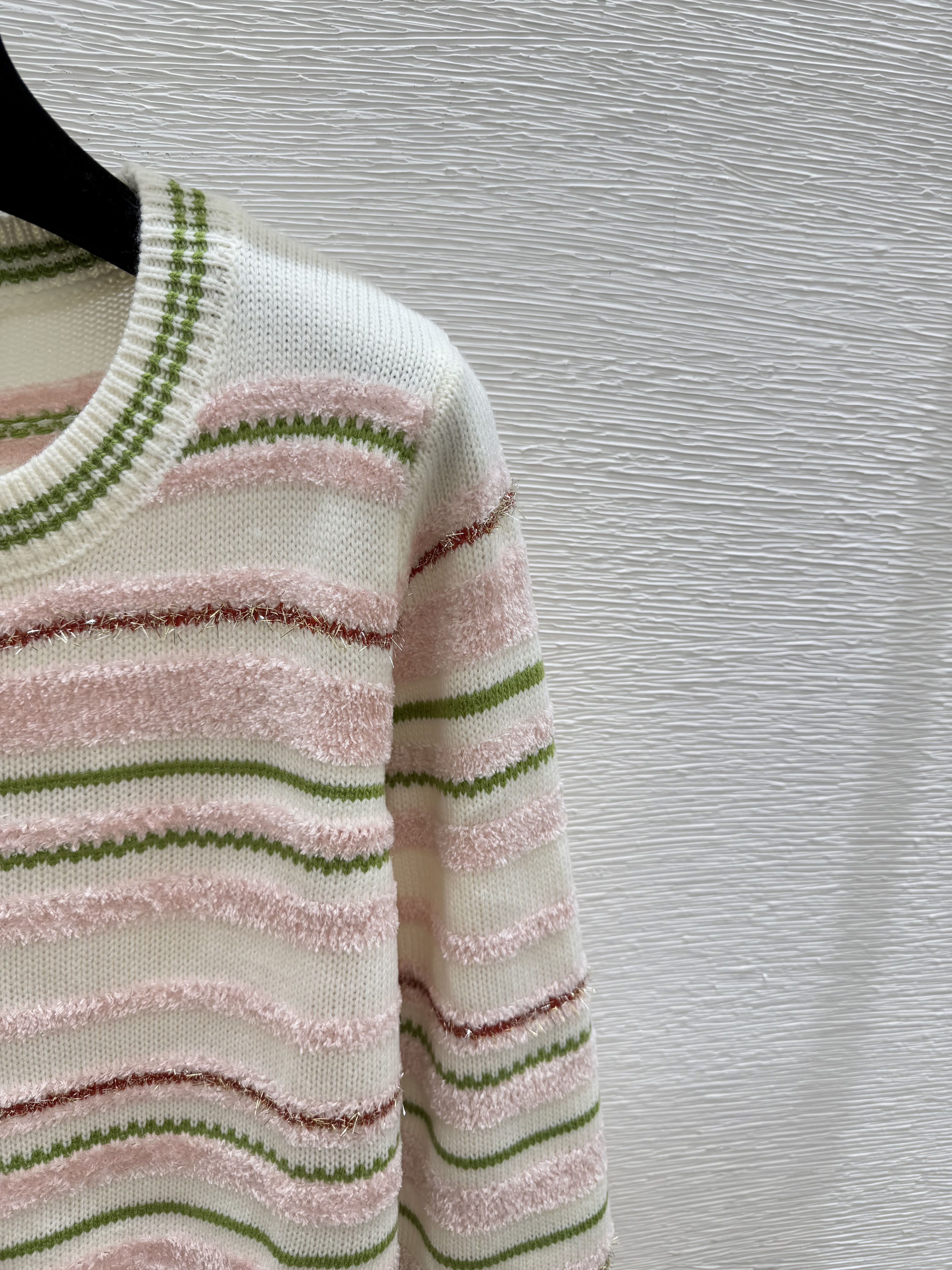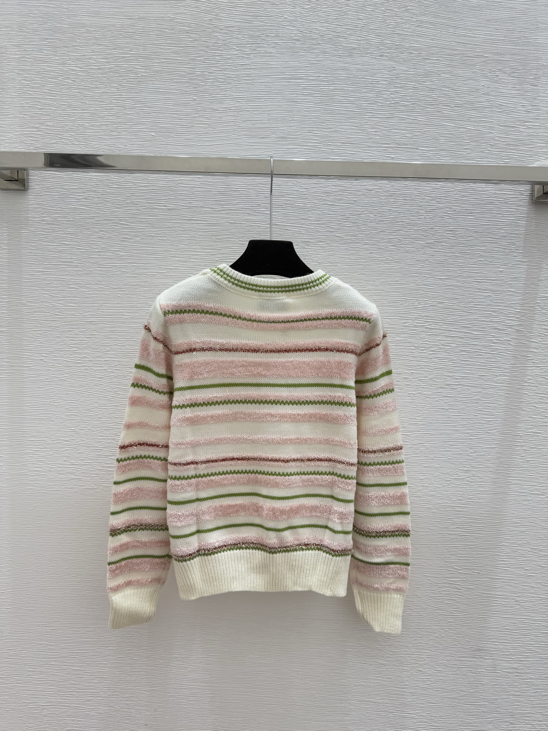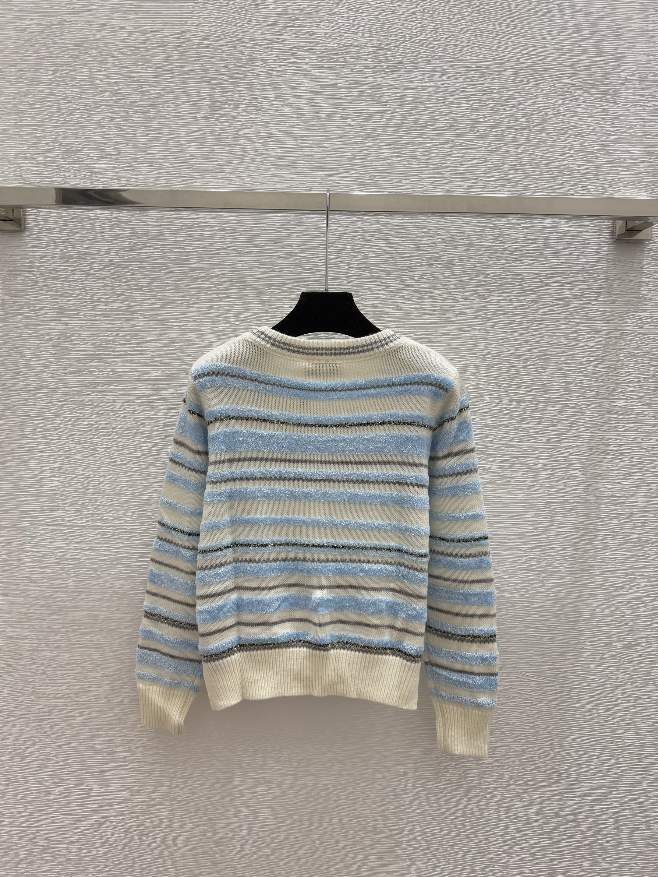 스트라이프 자카드 라운드넥