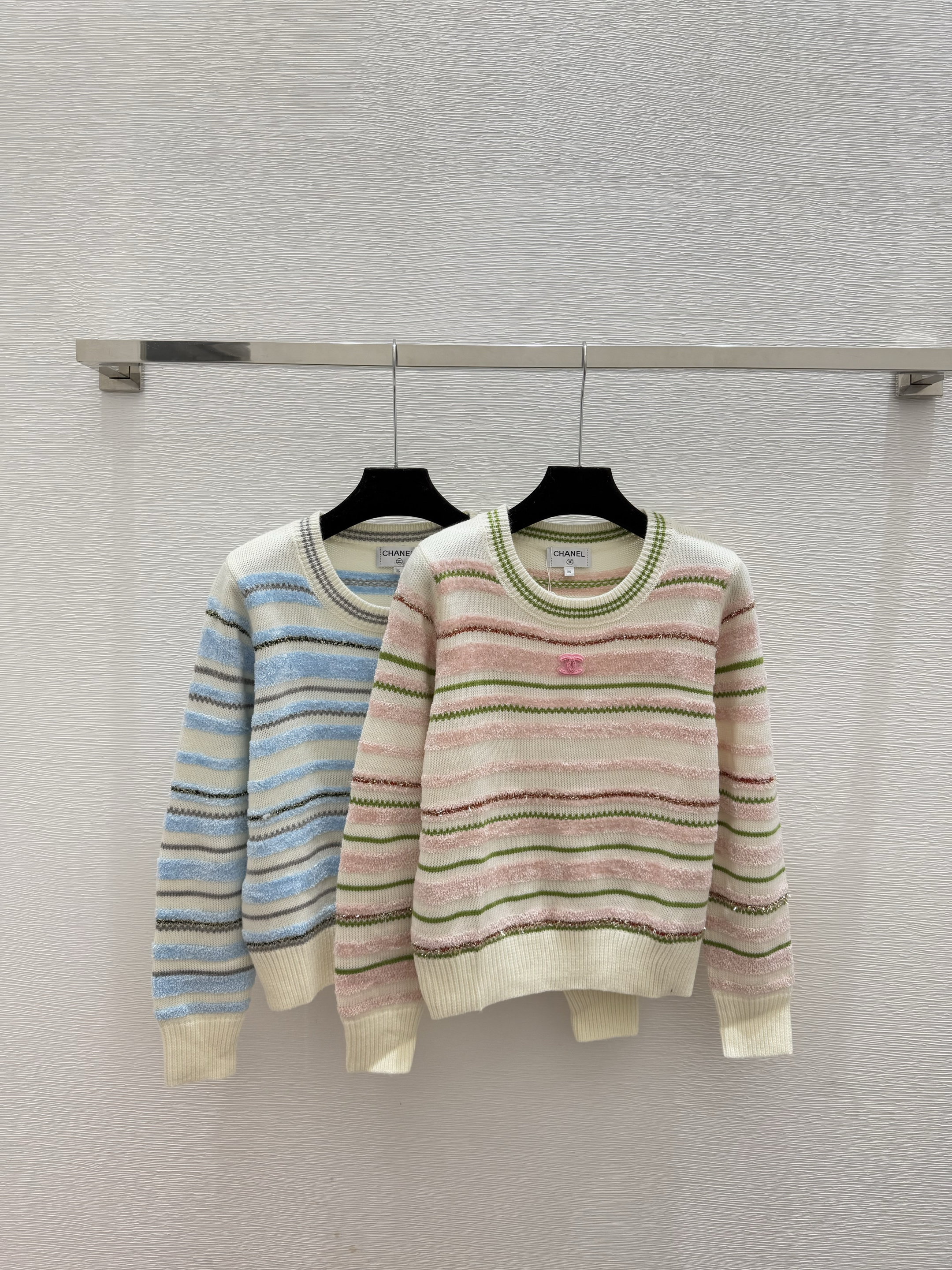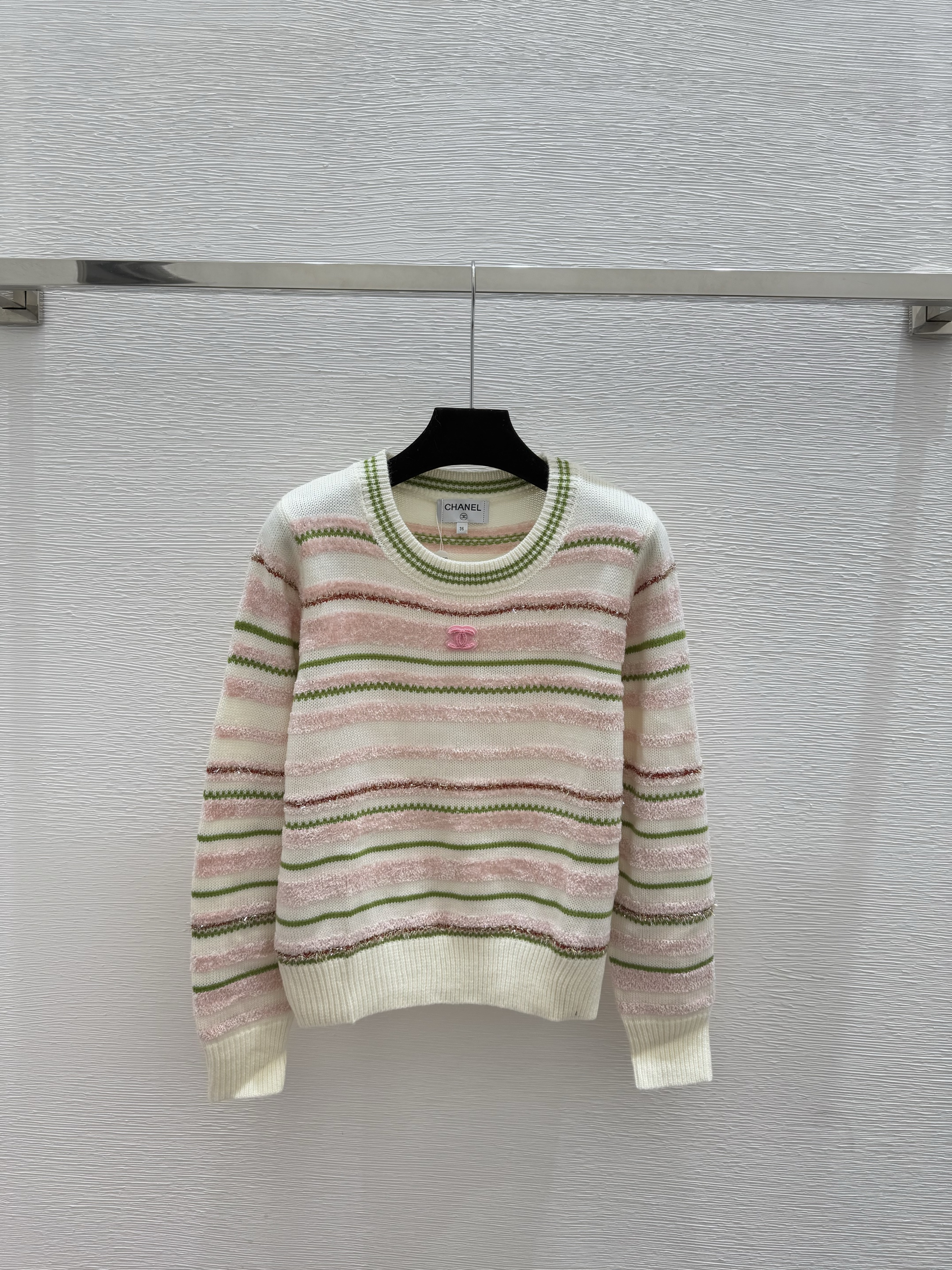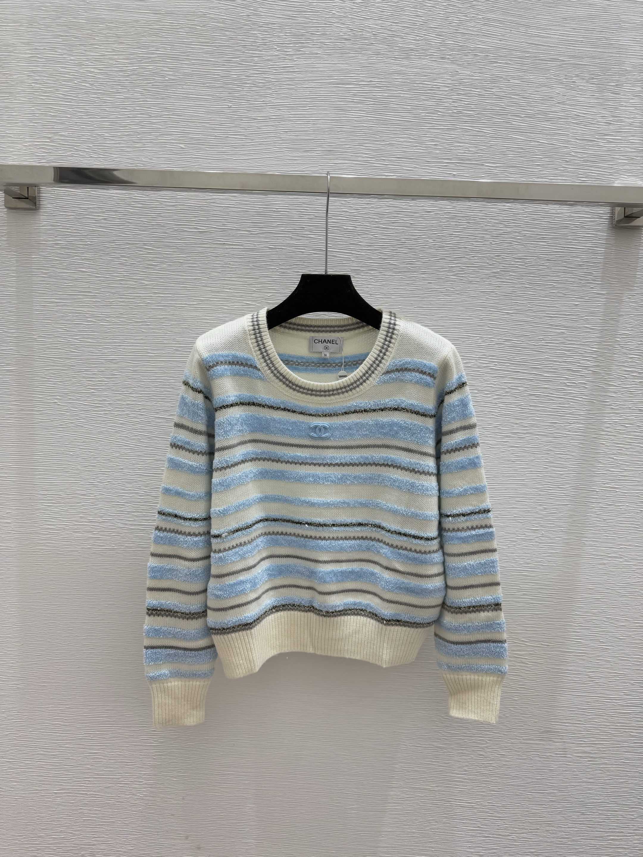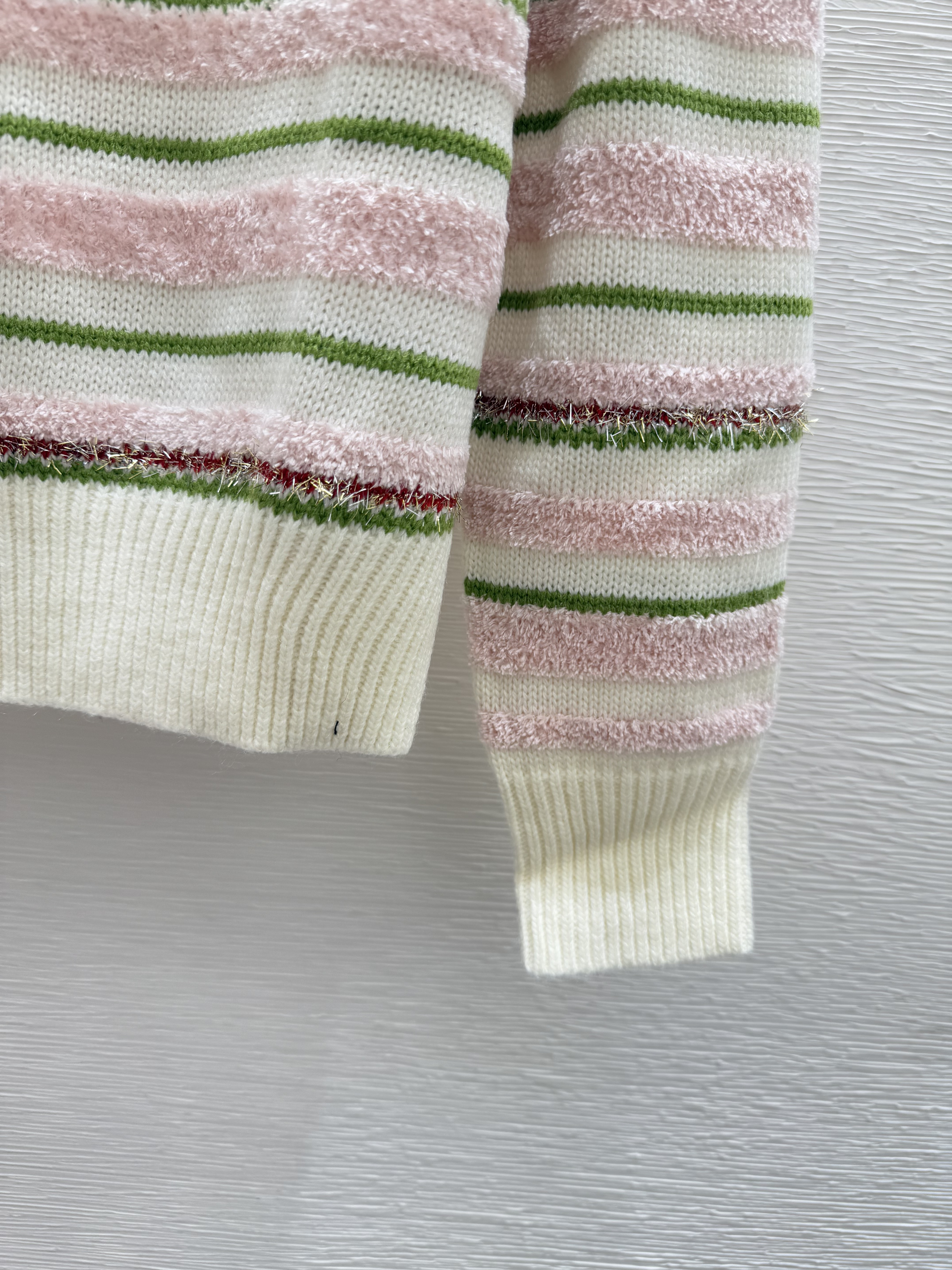 스트라이프 자카드 라운드넥