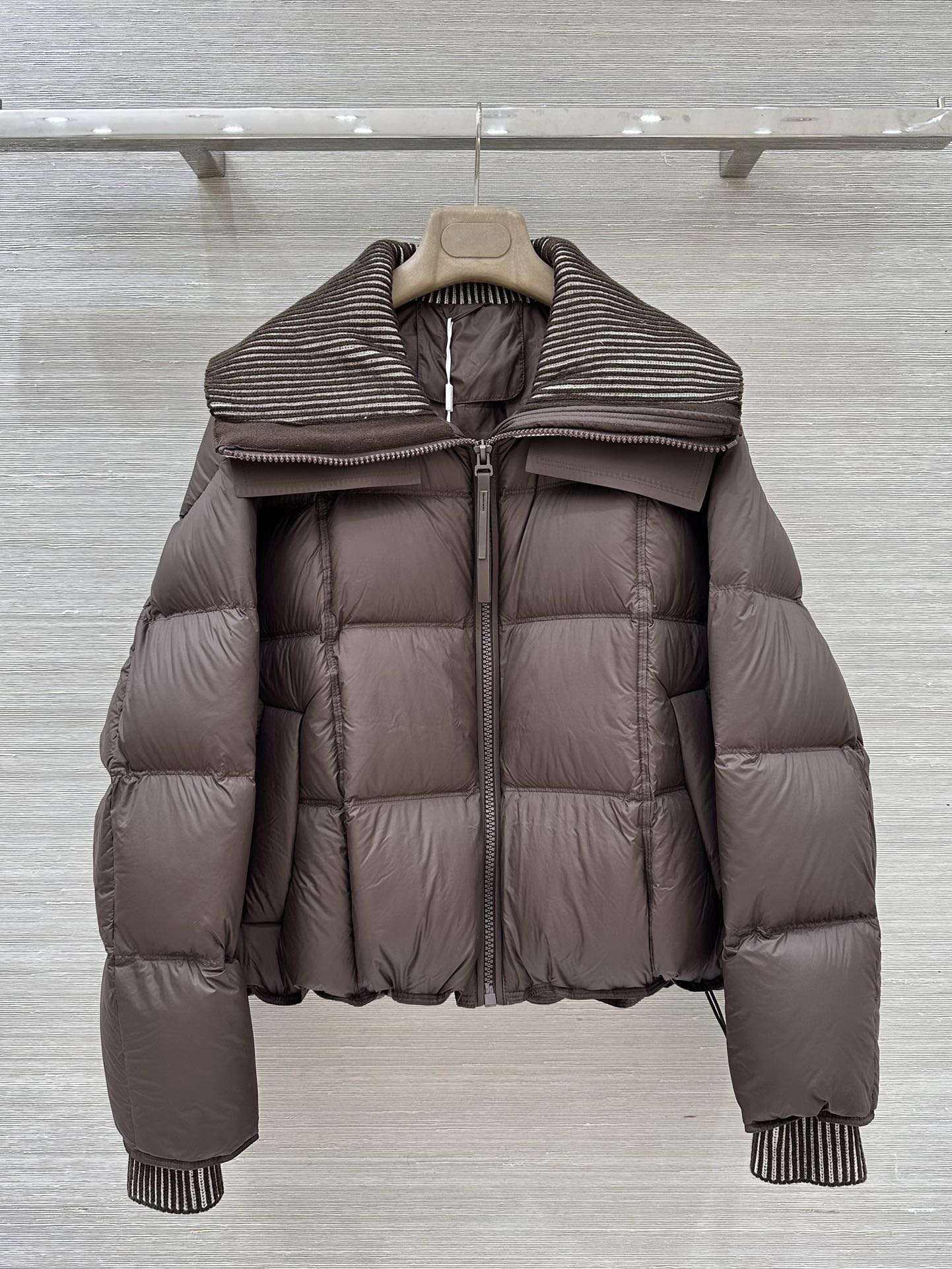 라펠 레터링 니트 숏다운재킷