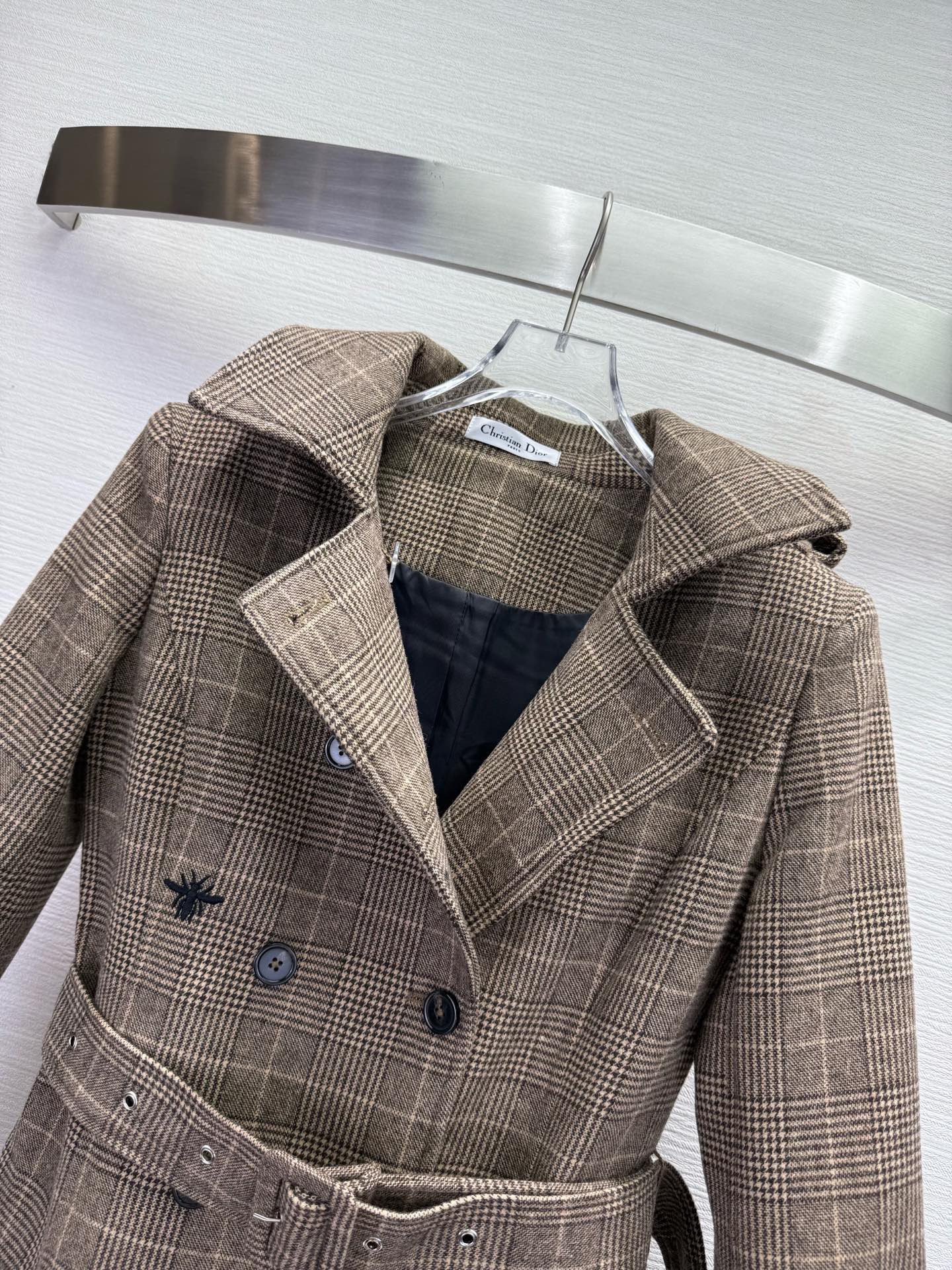 디올 자수 플레드 코트