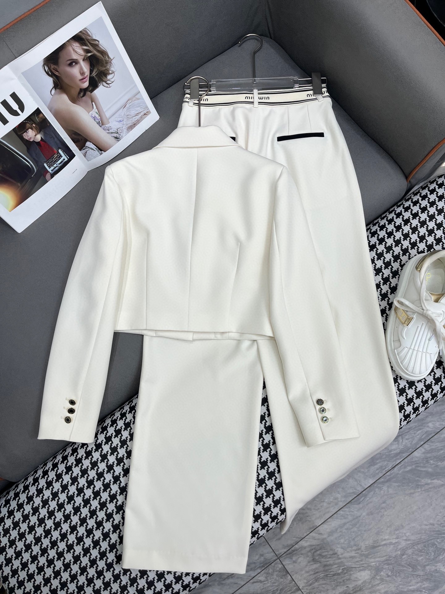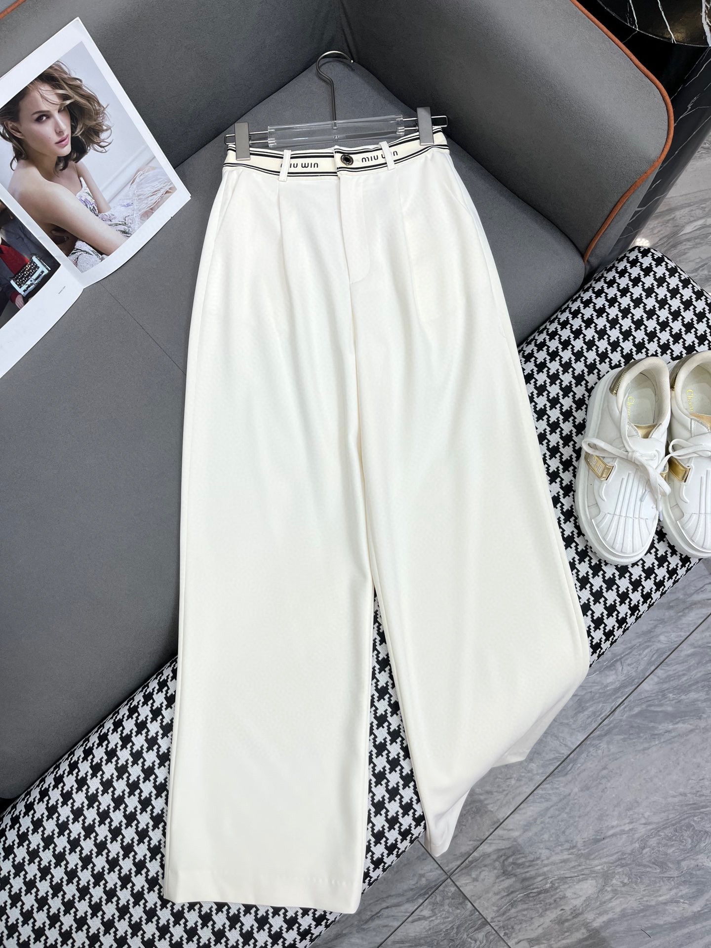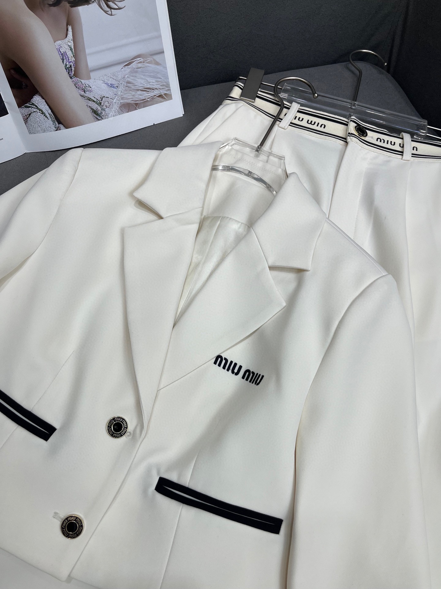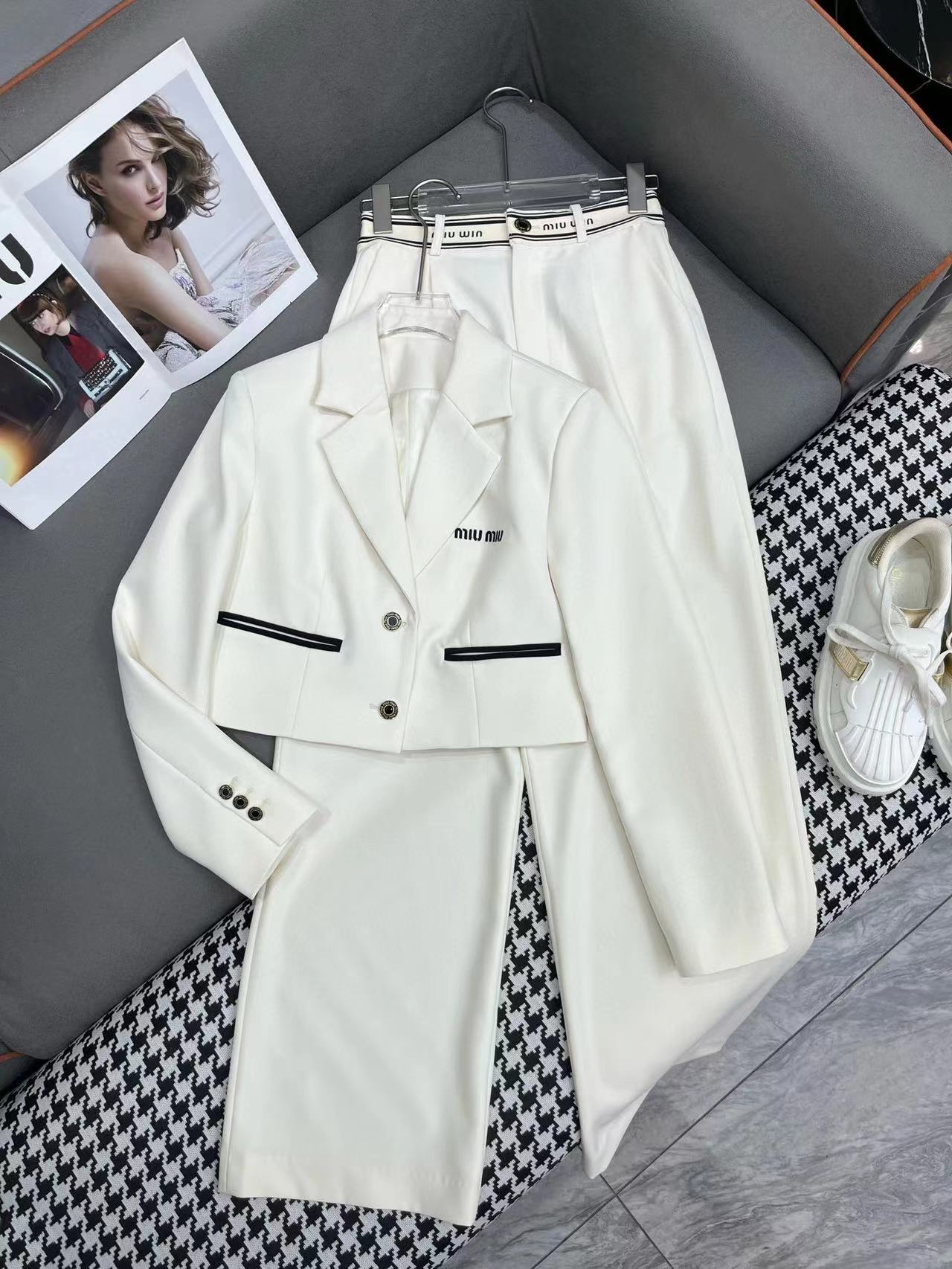 미우미우 레터 장식 슈트 팬츠